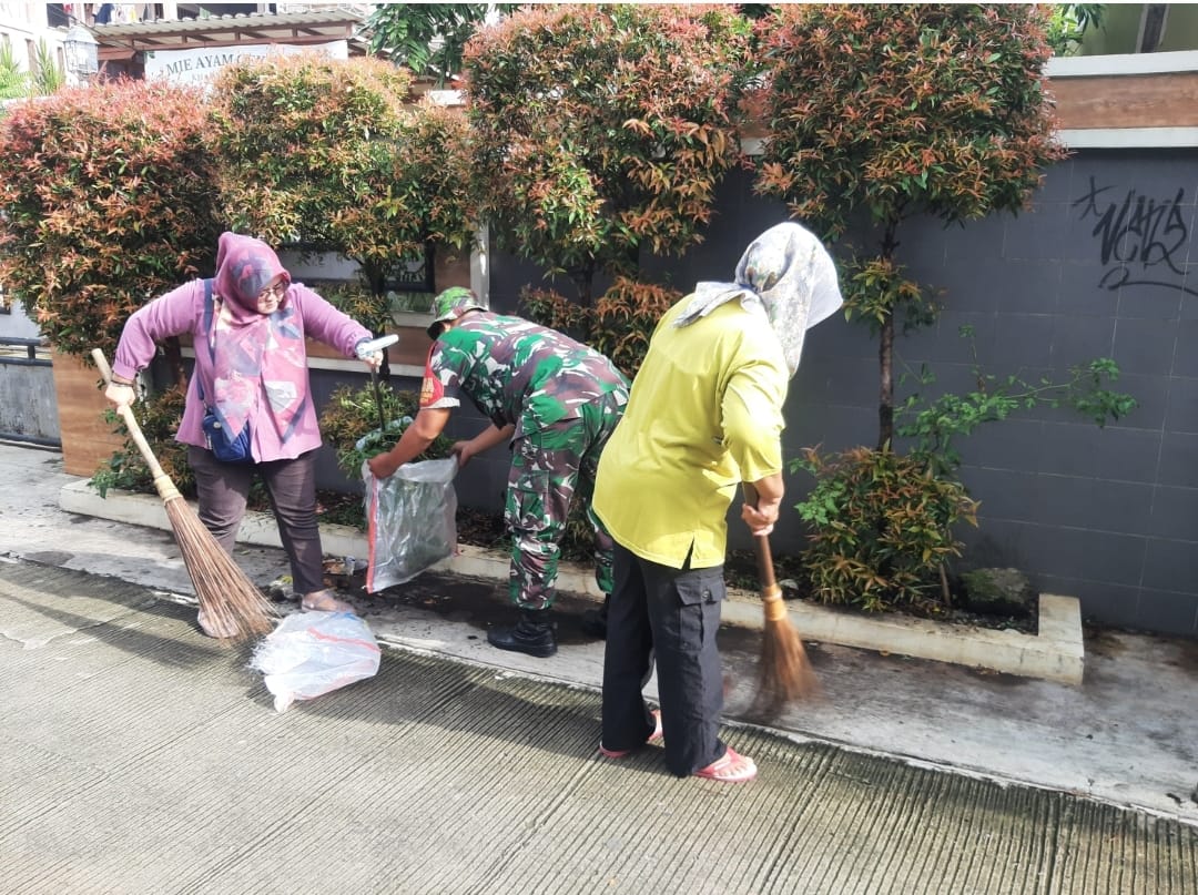 Di Gondrong, Babinsa dan Warga Bersihkan Lingkungan