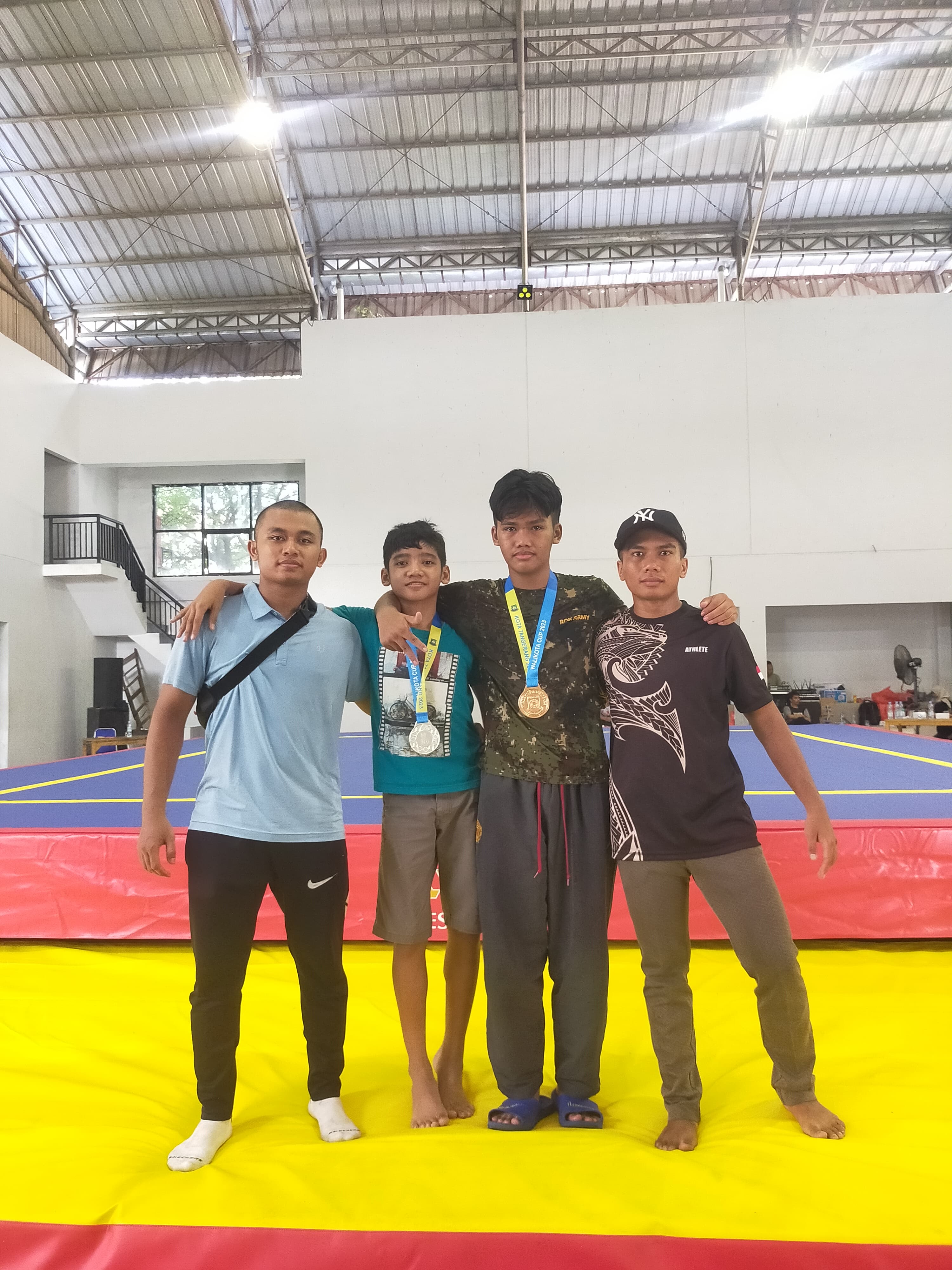 MEGAPOLITANPOS.COM Kota Tangerang - 3 (tiga) Atlit Bela Diri Asal Kota Tangerang, Marcelano Indartono (14) tahun, Raphael Indartono (20) tahun, Sanmael Indartono (13) tahun, Warga Kelurahan Gebang Raya, Kecamatan Periuk - Kota Tangerang. Jum'at (22/12/2023).