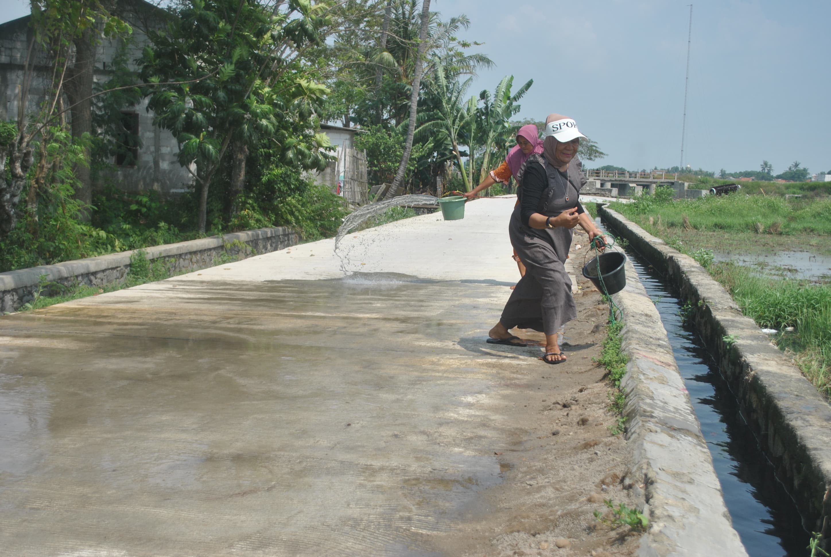 Antusiasme ibu-ibu warga Gintung, Kec Sukadiri terlihat dengan jelas ketika mereka menggunakan air dari saluran sawah untuk memastikan keawetan jalan betonisasi tersebut. Tindakan tersebut menunjukkan kesadaran akan pentingnya menjaga dan merawat fasilitas umum untuk kepentingan bersama.