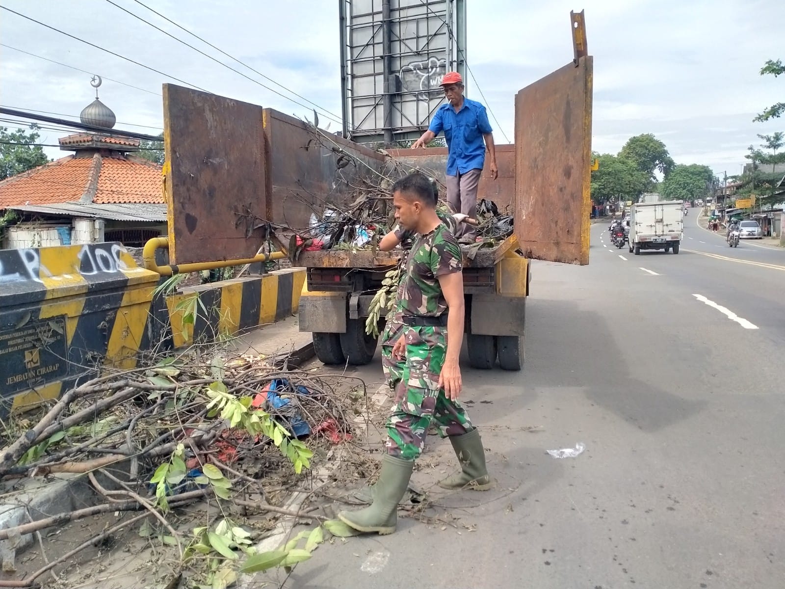 MEGAPOLITANPOS.COM Kab Tangerang, Tigaraksa, Mengantisipasi banjir di musim penghujan personil Koramil 04/Cikupa Kodim 0510/Tigaraksa bersama warga masyarakat membersihkan sungai Cirarab Kampung Bitung RT 01/01 Desa Bitung Jaya Kecamatan Cikupa Kabupaten Tangerang, Rabu (06/12/2023).