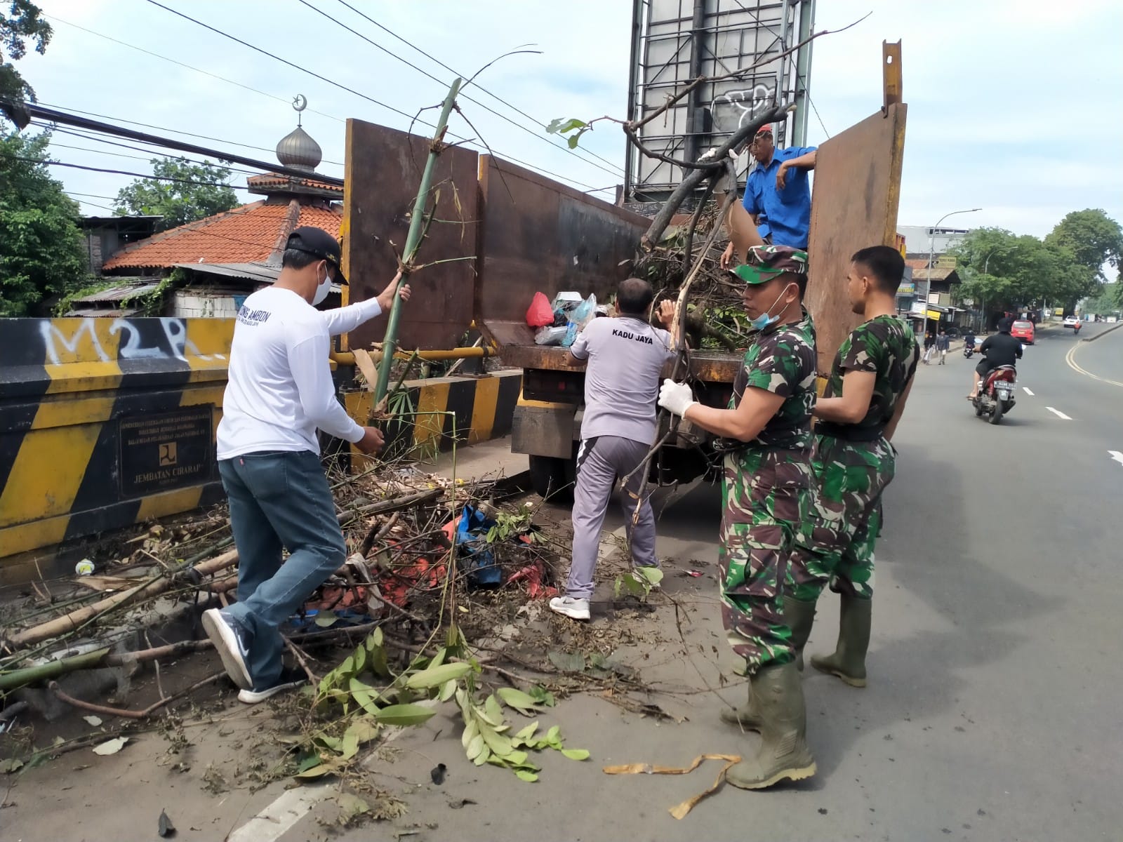 "Karya Bakti (Karbak) ini untuk mengantisipasi banjir akibat aliran sungai terhambat batu dan ranting kayu yang berada di sungai Cirarab," ujarnya.