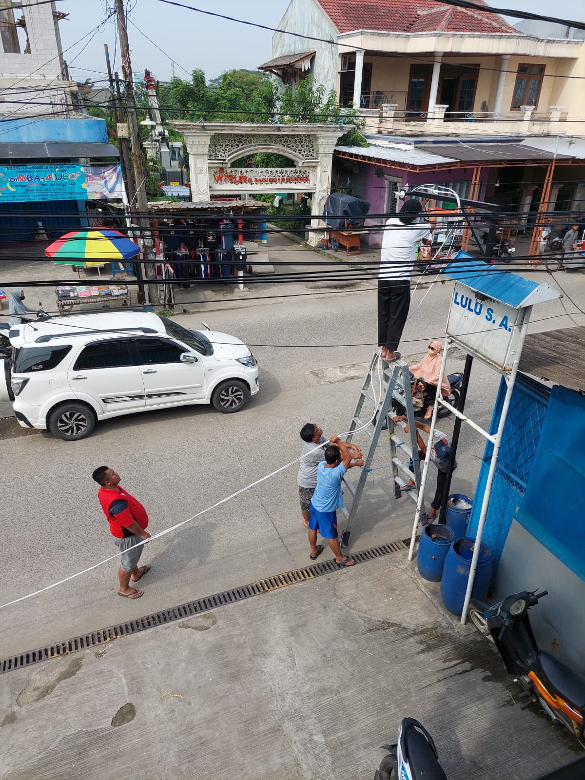 Keterangan Gambar : Warga RT 004/011 sedang kerjabakti memasang CCTV