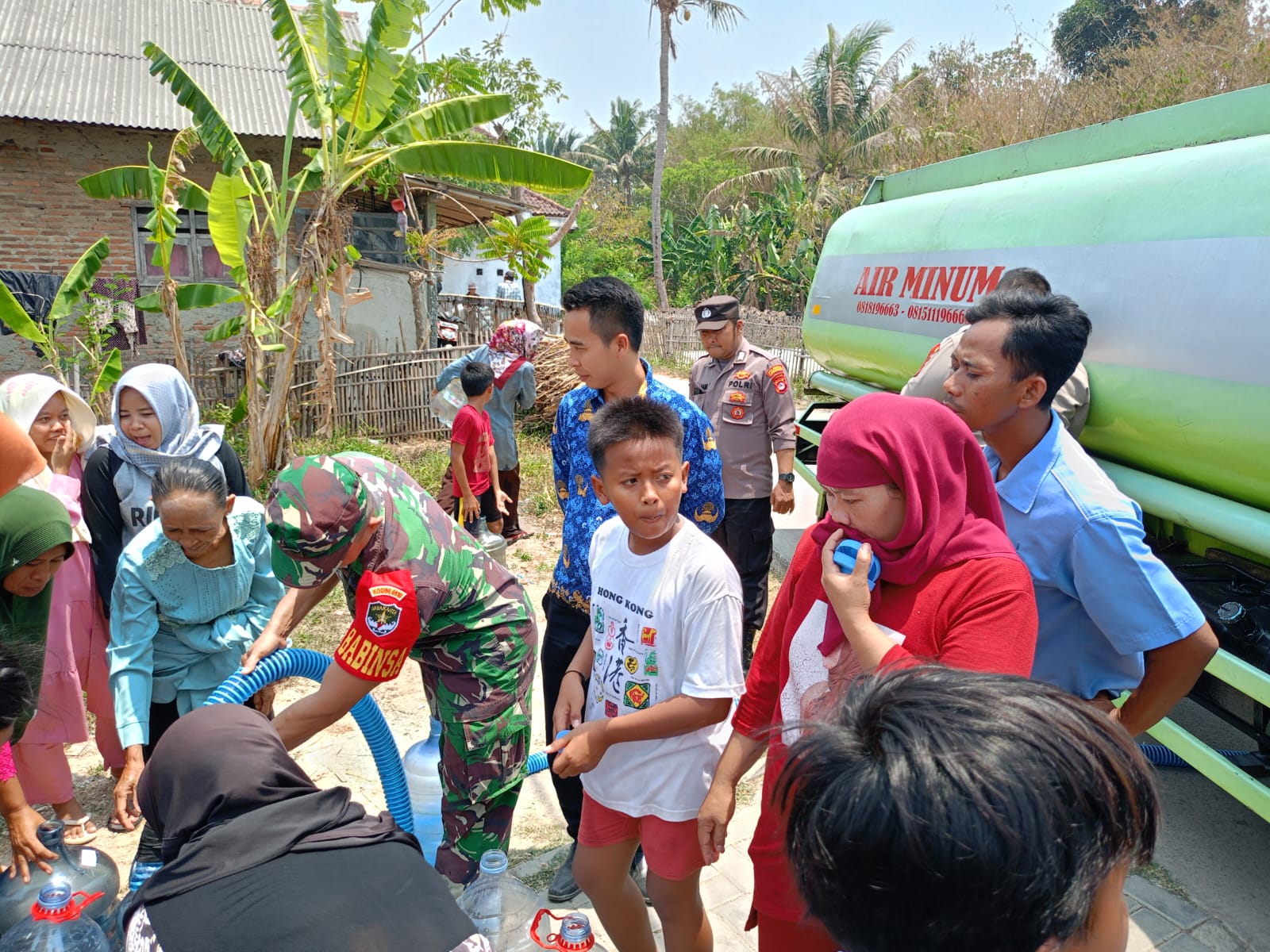 "Babinsa turun langsung membantu menuangkan air dari tangki ke ember dan dirigen air milik warga. Ada 7000 liter air bersih di berikan kepada warga," katanya. ** (Nan)