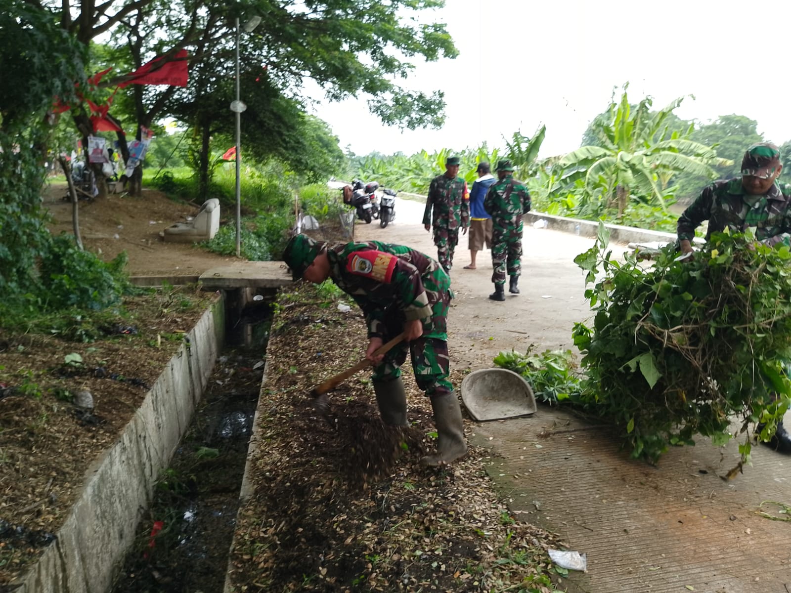 Kerja bakti pembersihan lingkungan dan saluran drainase tersebut dilakukan Peltu Dulhalim, Pelda Wawan, Sertu Vidi, Serda Ahmad dua personil anggota Polsek, dua staf Kelurahan Koang Jaya dan warga masyarakat setempat.