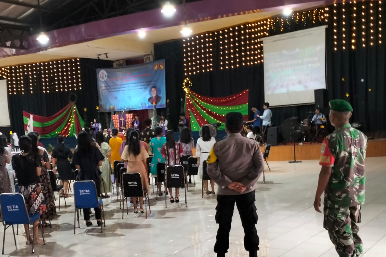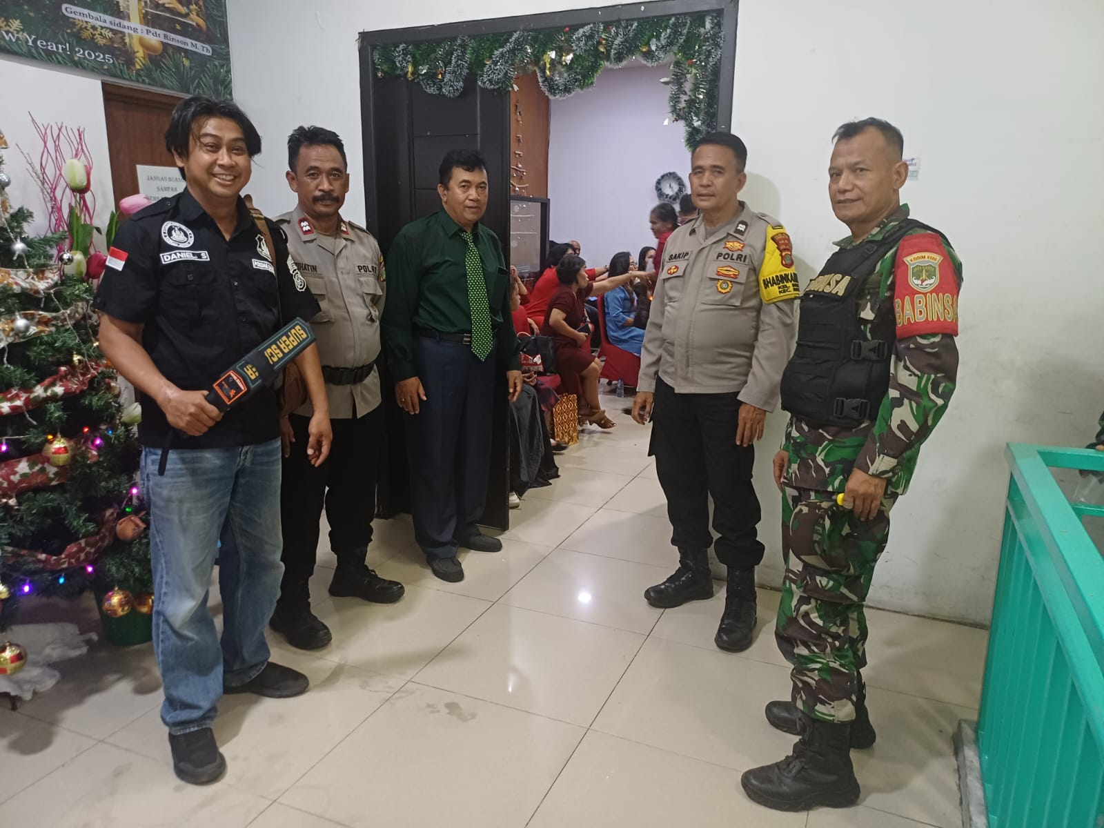 MEGAPOLITANPOS.COM Kota Tangerang - Upaya menjaga gangguan Kamtibmas, Babinsa Kelurahan Kebon Besar, Koramil 02/Btc, Kodim 0506/Tgr memonitoring misa natal di GKSI Imanuel Kampus STTI Arstamar Jalan Daan Mogot Kelurahan Kebon Besar, Kecamatan Batu Ceper, Kota Tangerang, Selasa (24/12/2024).