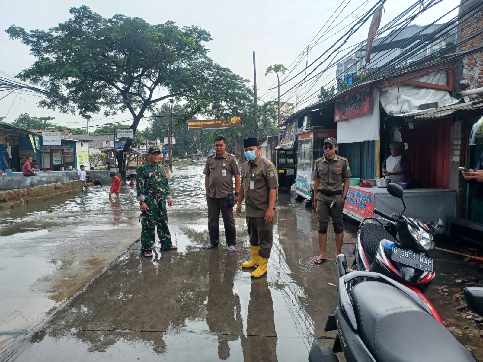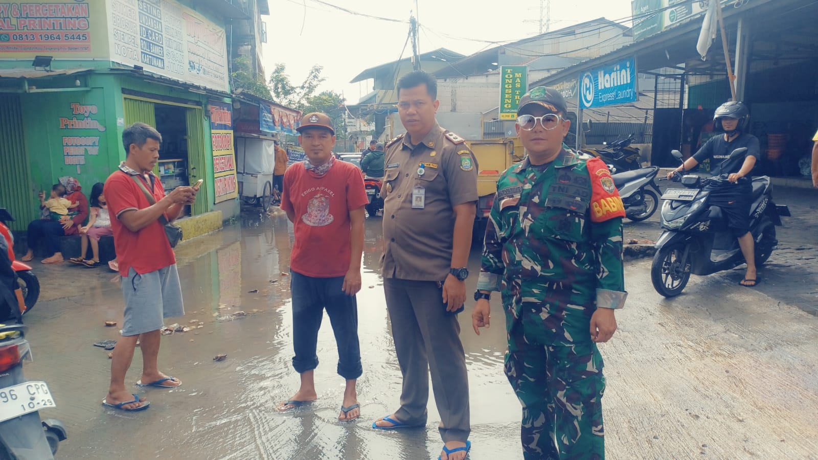 Untuk memonitoring musibah alam tersebut, Babinsa Koramil 01/Tgr terjun langsung ke lokasi terjadinya banjir tersebut, banjir melanda di beberapa titik di Kelurahan Petir Kecamatan Cipondoh Kota Tangerang.