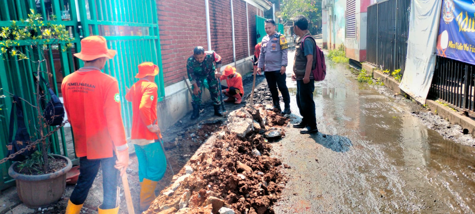 Antisipasi galian saluran bagian dari Kerja Bhakti yang di ikuti Babinsa bersama warga masyarakat di lingkungan sekitar.