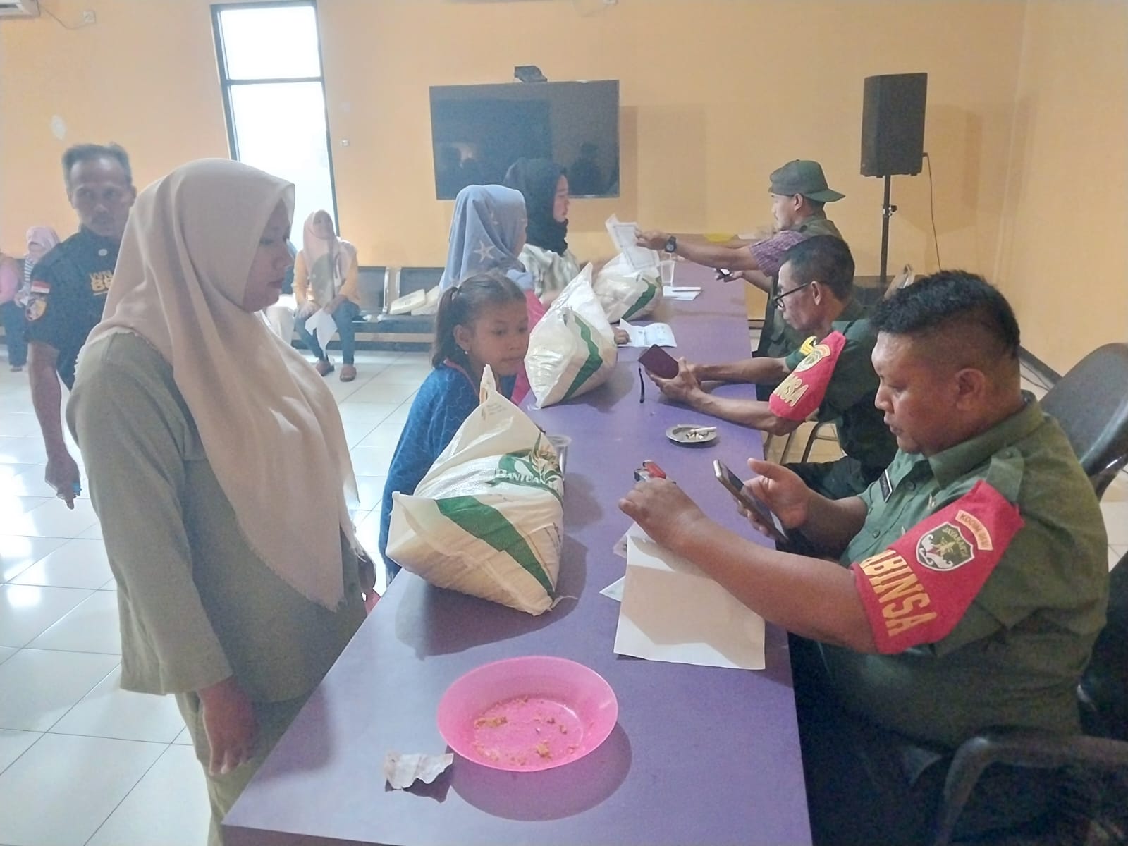 MEGAPOLITANPOS.COM Tigaraksa - Pendistribusian bantuan pangan berupa beras Pemerintah melalui PT. YASA dan Kodam Jaya sebanyak 5.066 karung untuk masyarakat Kecamatan Panongan Kabupaten Tangerang wilayah Koramil 14/Panongan Kodim 0510/ Tigaraksa. Jumat, (14/6/2024)