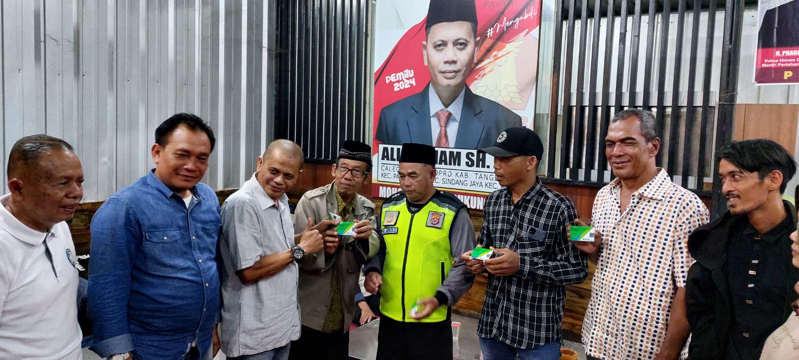 MEGAPOLITANPOS.COM Kabupaten Tangerang - Belum duduk di kursi Dewan Ali Farham SH. MH nomor urut 6 Calon Legislatif (Caleg) dari Partai Gerindra membuktikan perhatiannya kepada warga masyarakat dapil IV, Kecamatan Pasar Kemis, Rajeg dan Sindang Jaya dengan memberikan secara gratis kepesertaan BPJS Tenaga Kerja Informal. Pemberian tersebut di bagikan di Posko Kemenangan Ali Farham di Perum Bumi Indah tahap V Desa Sukamantri Kecamatan Pasar Kemis, Kabupaten Tangerang, Minggu (07/01/2024).