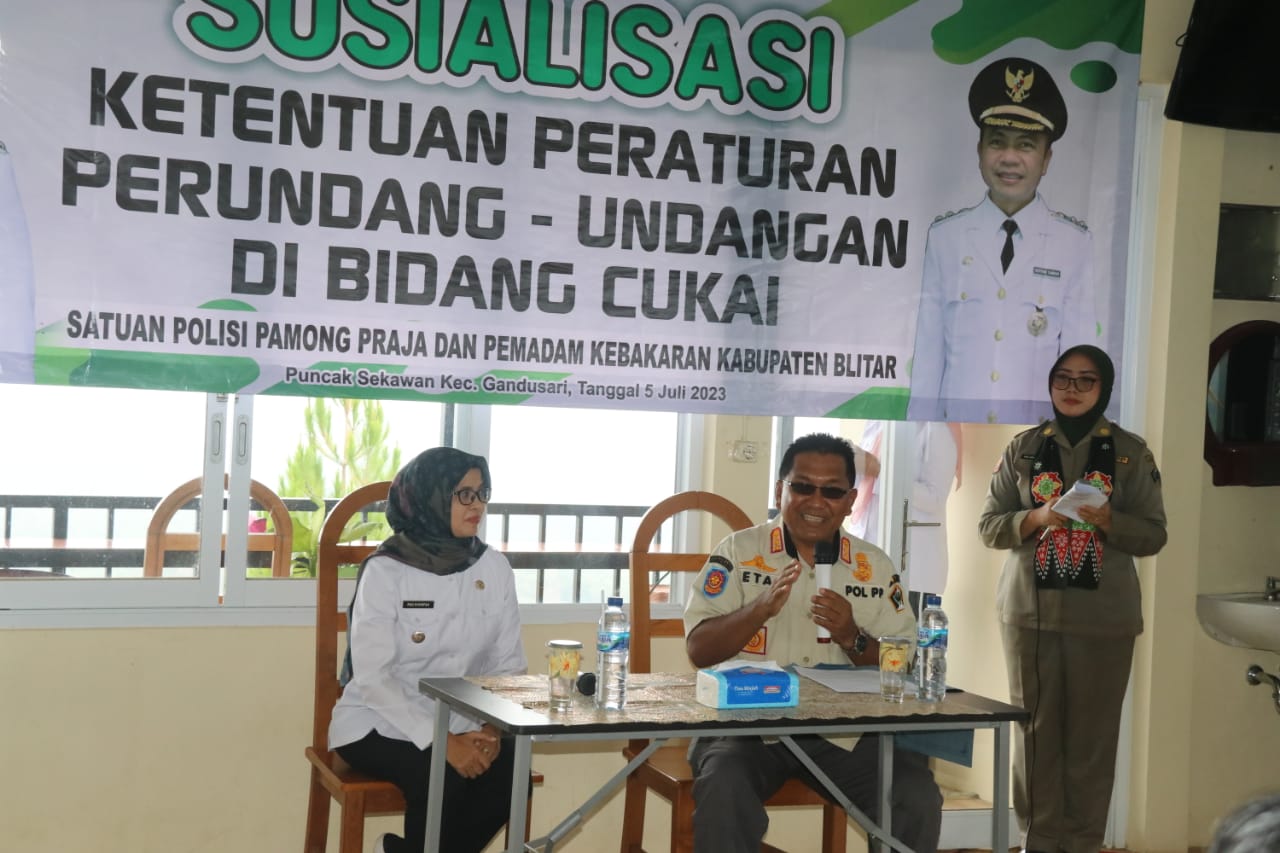 MEGAPOLITANPOS.COM, Blitar - Sebagai upaya meningkatkan pendapatan sektor pajak bea cukai kususnya industri rokok, pemerintah Kabupaten Blitar terus menggencarkan sosialisasi memberantas dan gempur peredaran rokok putih atau rokok ilegal. Seperti yang diselenggarakan pada Rabu (05/07/23), Satpol PP bersama petugas bea cukai Blitar menggelar acara sosialisasi ketentuan peraturan perundang - undangan bidang cukai.