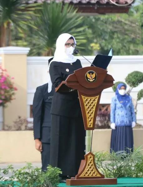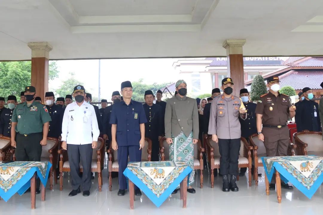 Keterangan Gambar : Pemerintah Kabupaten Blitar menggelar Upacara bendera bertempat di aloon - aloon Kantor Kabupaten Blitar pada Rabu (12/10/22.