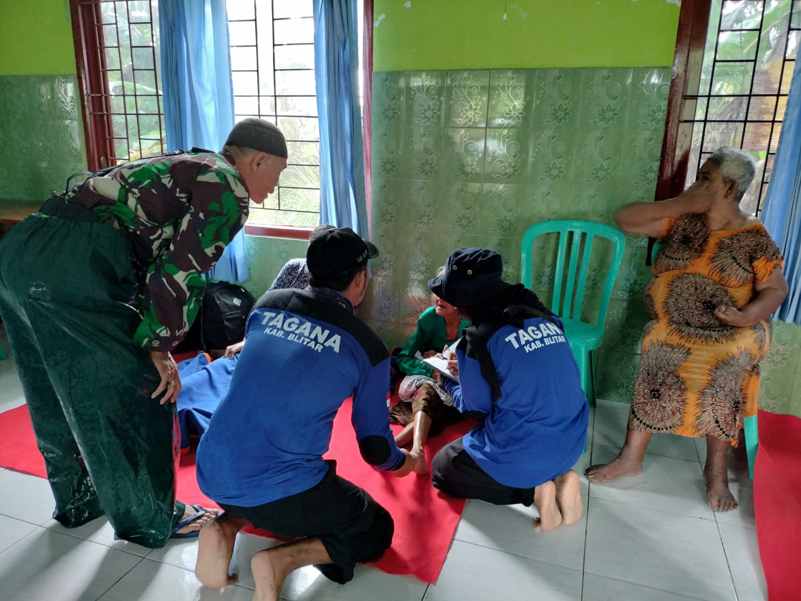 Rombongan Bupati Blitar dalam peninjauan ke lokasi banjir di Sutojayan saat itu didampingi Sekertaris Daerah Izul Marom, Kepala Dinas Sosial Bambang Dwi Kepala Pelaksana BPBD Kabupaten Blitar Ivong Bettrryanto bersama Muspika.