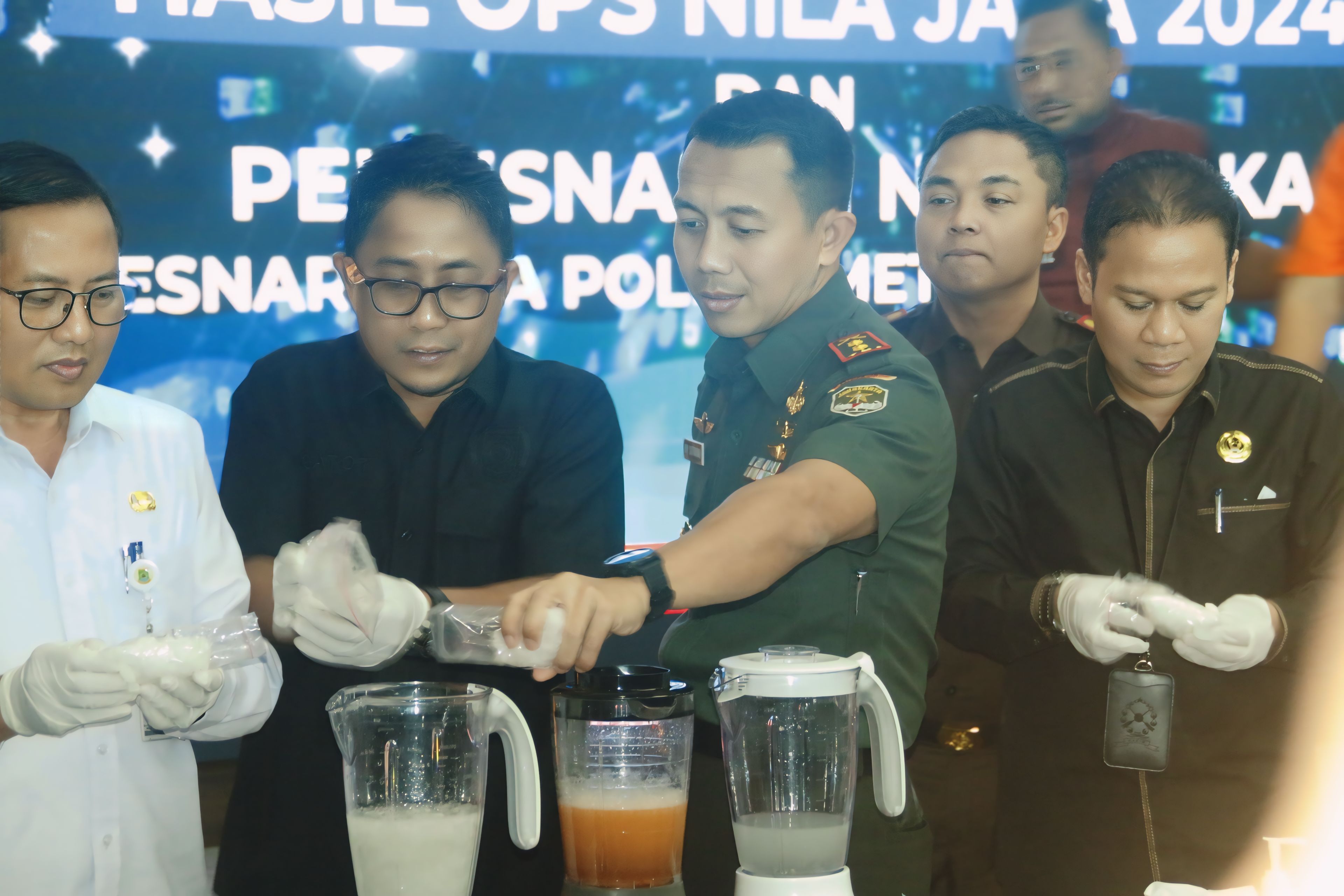MEGAPOLITANPOS.COM Kota Tangerang - Dandim 0506/Tgr Letkol Inf Ary Sutrisno menghadiri langsung konferensi Pers Hasil operasi Nilai Jaya 2024 yang dilakukan Polres Metro Tangerang Kota, Polda Metro Jaya. Konferensi pers memusnahkan 3,89 Kg. narkotika jenis sabu-sabu dan ribuan butir pil Exstasi serta obat berbahaya jenis G.