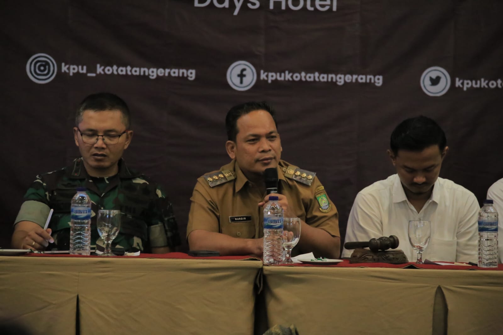 Tampak hadir dalam rapat Dr. Nurdin Pj. Walikota Tangerang, AKBP Yanmiko Sianturi Kasat Intelkam Polres Metro Tangerang Kota, Khusnul Fuad, S.H., M.H Kasi Intel Kejaksaan Negeri Kota Tangerang, Vinza S. Ketua Tim Politik dalam negeri Kakesbangpol Kota Tangerang, Wawan Fauzi SE,S.Kom, MM Kasatpol PP Kota Tangerang, dr. Dini Anggraeni,M.M Kepala Dinas Kesehatan Kota Tangerang, Kapten Micael Pos Binda Kota Tangerang, Qory Ayatulloh Ketua KPU Kota Tangerang, Faridal Akram Komisioner Bawaslu Kota Tangerang, Para Anggota Komisioner KPU Kota Tangerang dan Para Perwakilan Partai Politik.