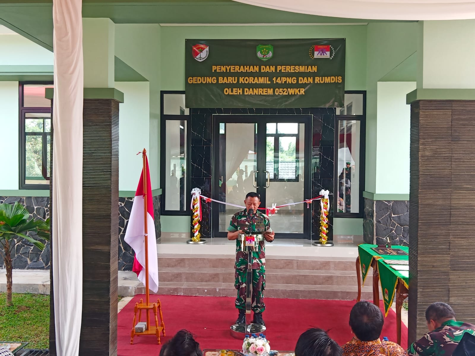 Dalam sambutan Danrem 052/Wkr Brigjen TNI Putranto Gatot SH yang dibacakan Oleh Kasrem 052/Wkr Kolonel Inf Dr Indarto Kusnohadi mengatakan, hari ini bersama-sama mengikuti acara peresmian gedung makoramil 14 Panongan dalam keadaan sehat walafiat dan bahagia, memang benar-benar harus bersyukur karena dalam situasi seperti ini semua yang di sini sehat dan bahagia.