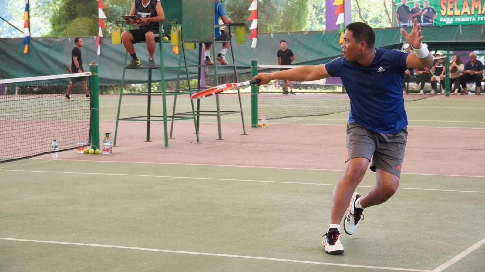 Keterangan Gambar : Dandim 0510/Tigaraksa Letkol Arh S.S. Bandjar memonitoring langsung turnamen Tenis Lover