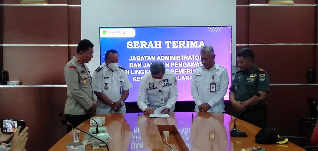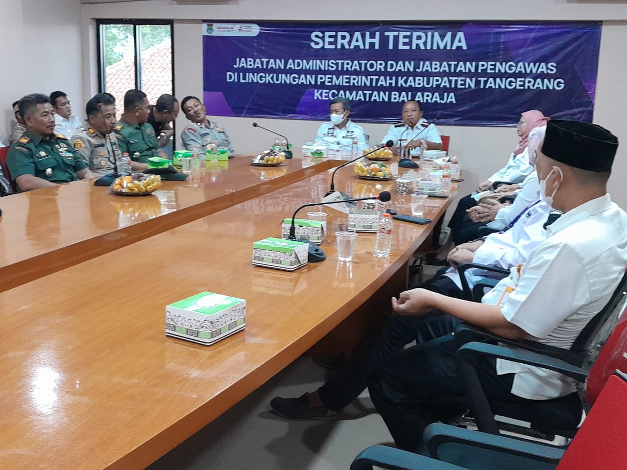 Kegiatan Serah Terima Jabatan (Sertijab) camat Balaraja di tandai dengan penandatanganan camat lama H. Yayat Rohiman dan camat baru Willy Patria.