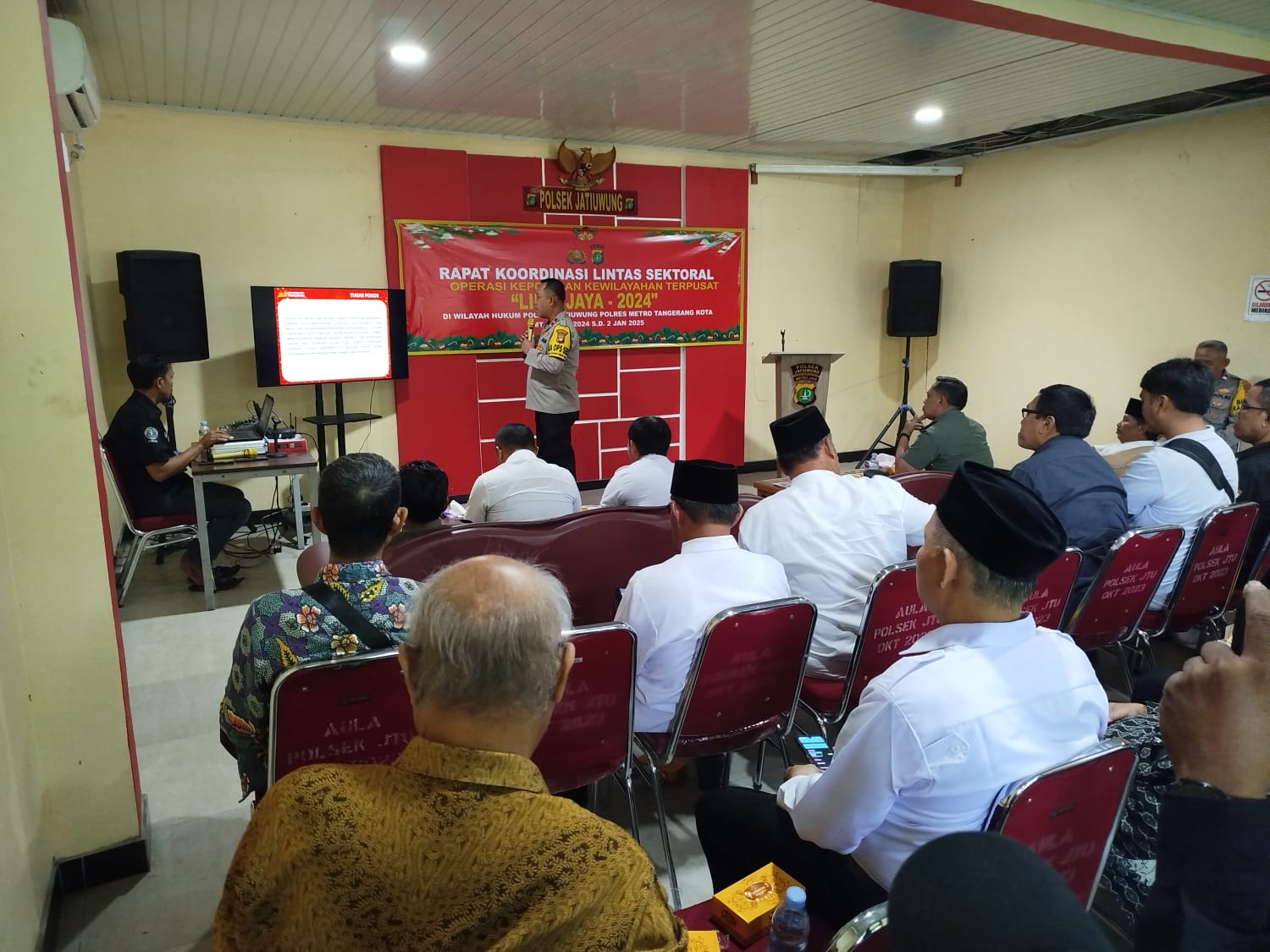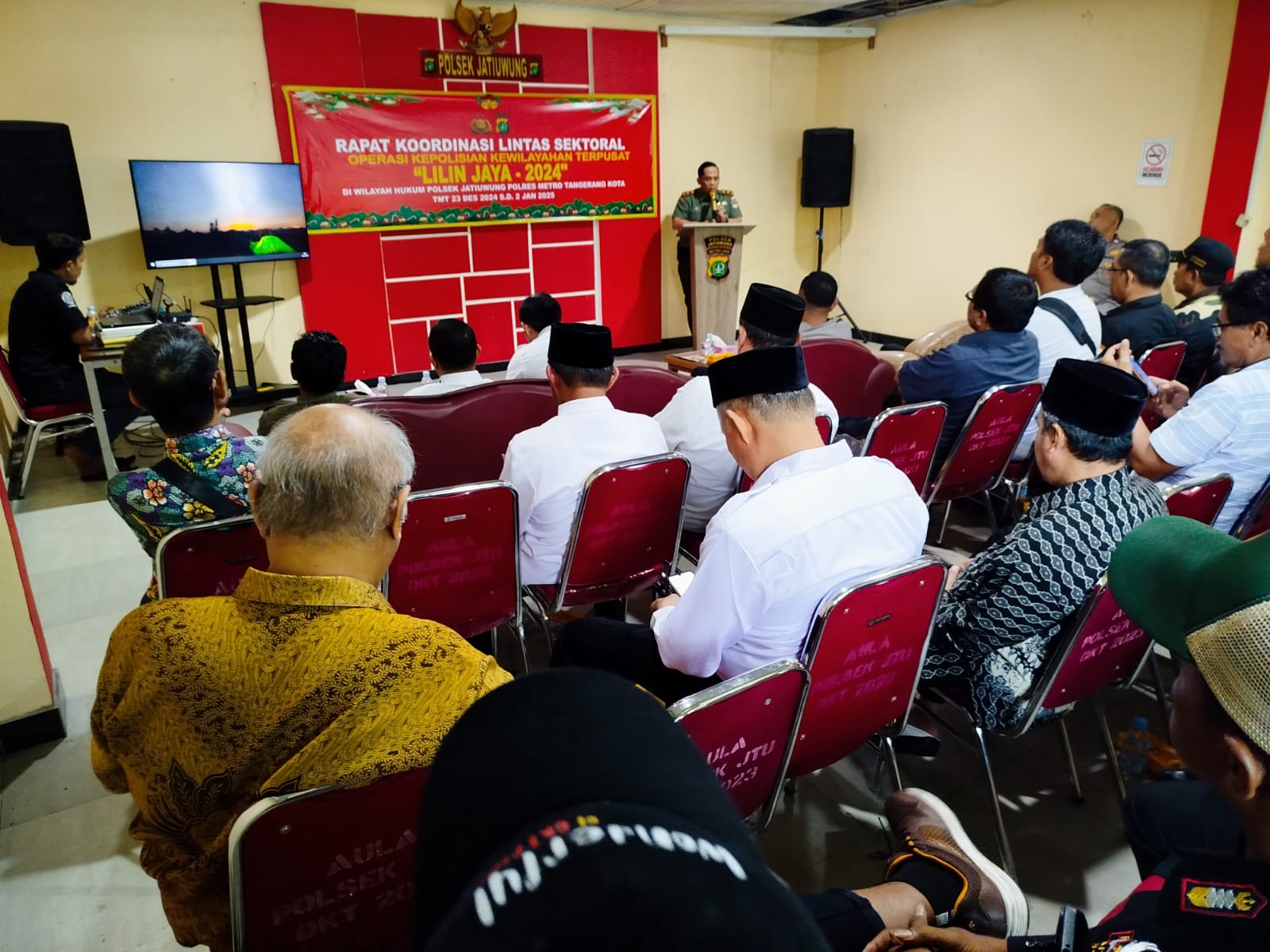 Kodam Jaya, Tangerang - Guna meningkatkan Sinergitas dalam rangka kesiapan operasi lilin jaya 2024 pengamanan Hari Raya Natal 2024 dan Tahun Baru 2025 di wilayah, Danramil 06/CBD, Kodim 0506/Tgr Mayor Kav Andi Budiman menghadiri Rakor lintas sektoral di Aula Kantor Polsek Jatiuwung, Kelurahan Keroncong, Kota Tangerang, Rabu (18/12/2024).