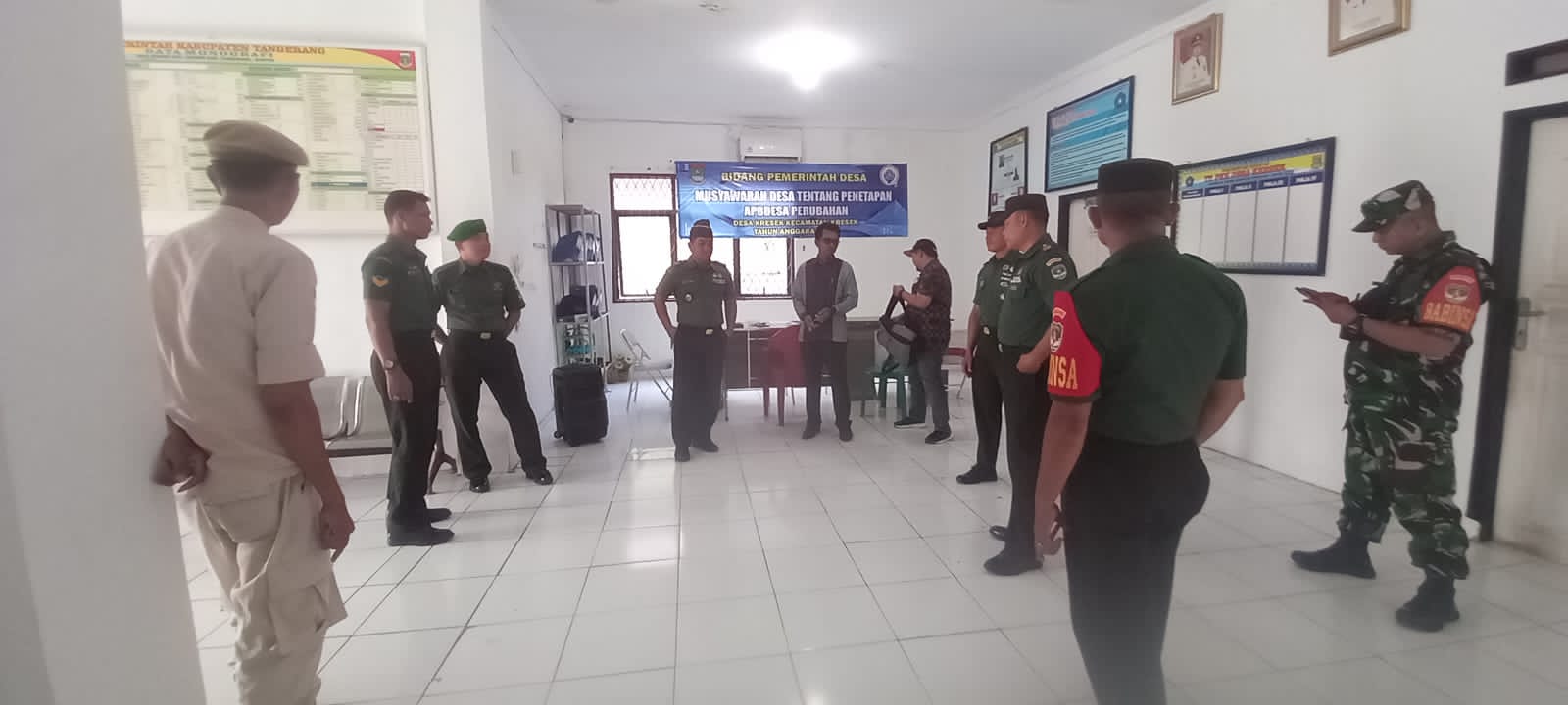 Danramil 07/Kresek Kapten Inf Khoirul Anwar menyampaikan ucapan terima kasih atas sambutan dari Camat dan Kades beserta stafnya dalam menerima kedatangan Danramil beserta Babinsa dalam rangka kegiatan Halal bihalal Hari Raya Idul Fitri 1 Syawal 1444 H.