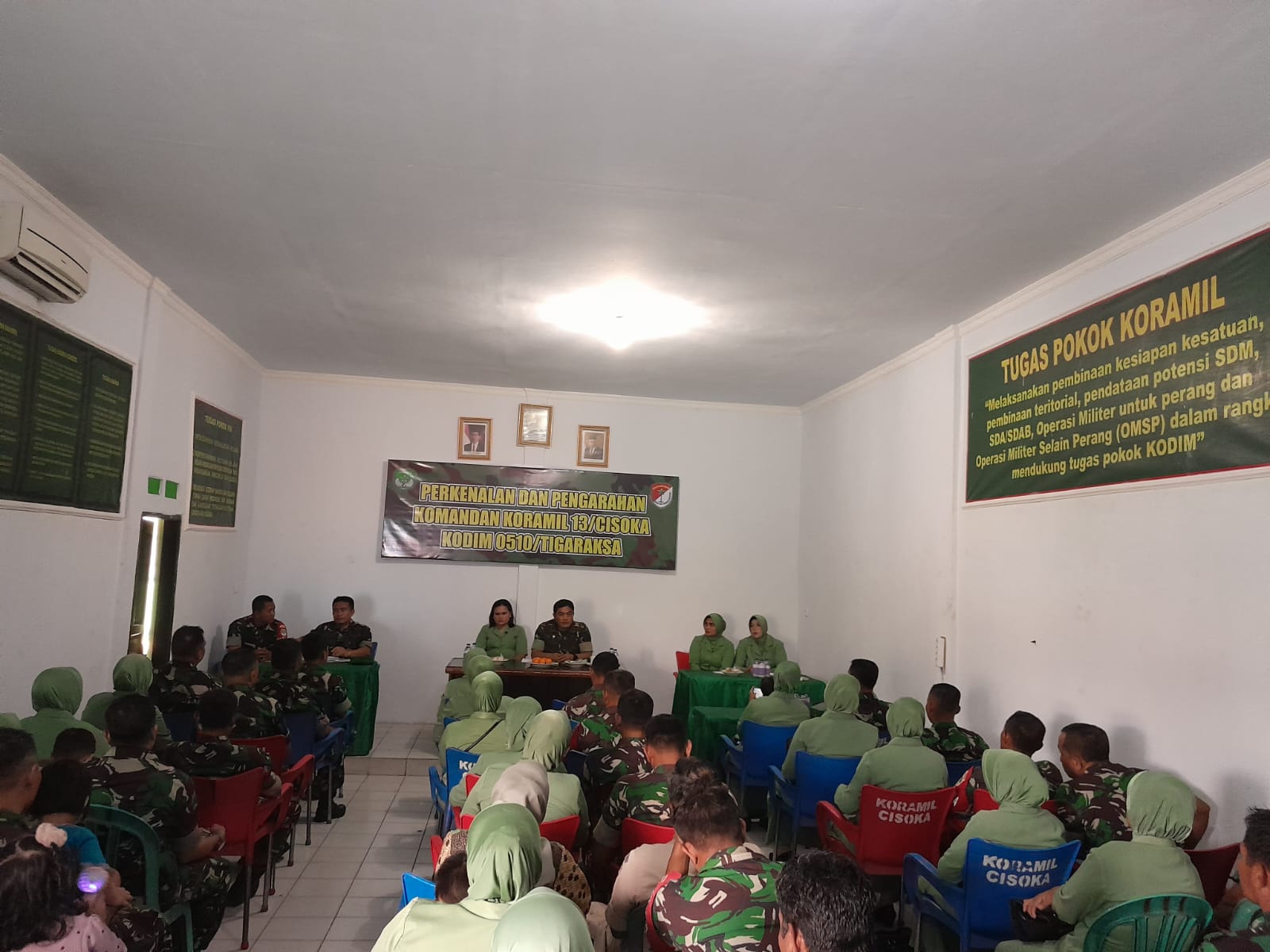 MEGAPOLITANPOS.COM Kab. Tangerang, Tigaraksa - Koramil 13/Cisoka yang di pimpin Kapten CHB Jitu Arman Sinaga menggelar Sosialisasi tentang Penggunaan Media Sosial kepada Anggita Koramil 13/Cisoka dan Anggita Persit KCK ranting 14 Koramil Cisoka.