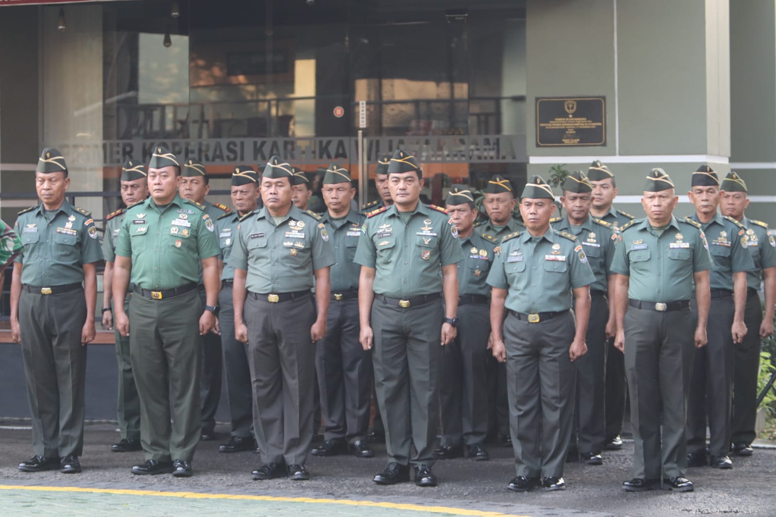 MEGAPOLITANPOS.COM Kab. Tangerang, Tigaraksa - Danrem 052/Wkr, Brigjen TNI Putranto Gatot Sri Handoyo, S. Sos, M.M. memimpin langsung pelepasan para perwira Korem 052/Wkr pindah satuan, upacara pelepasan di lakukan di halaman upacara Makorem 052/Wkr. Senin, (17/07/2023).