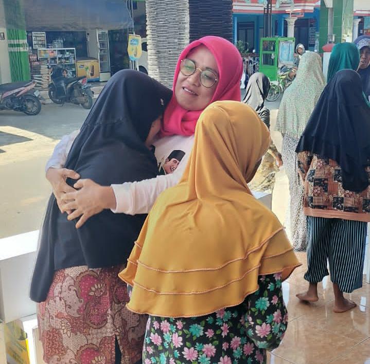Keterangan Gambar : Dra Tuti Komariyati disambut rasa haru oleh kaum dhuafa saat menyampaikan bingkisan paket sembako di Blitar Selatan.