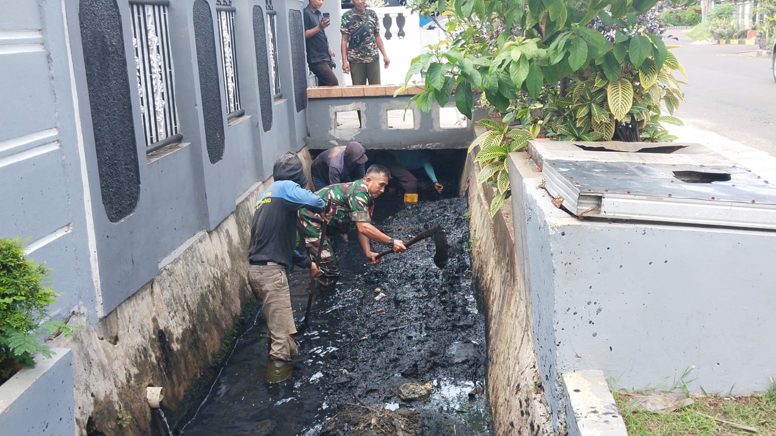 Empat Babinsa Koramil 04/Ciledug Nyebur Ke Got Antisipasi Banjir