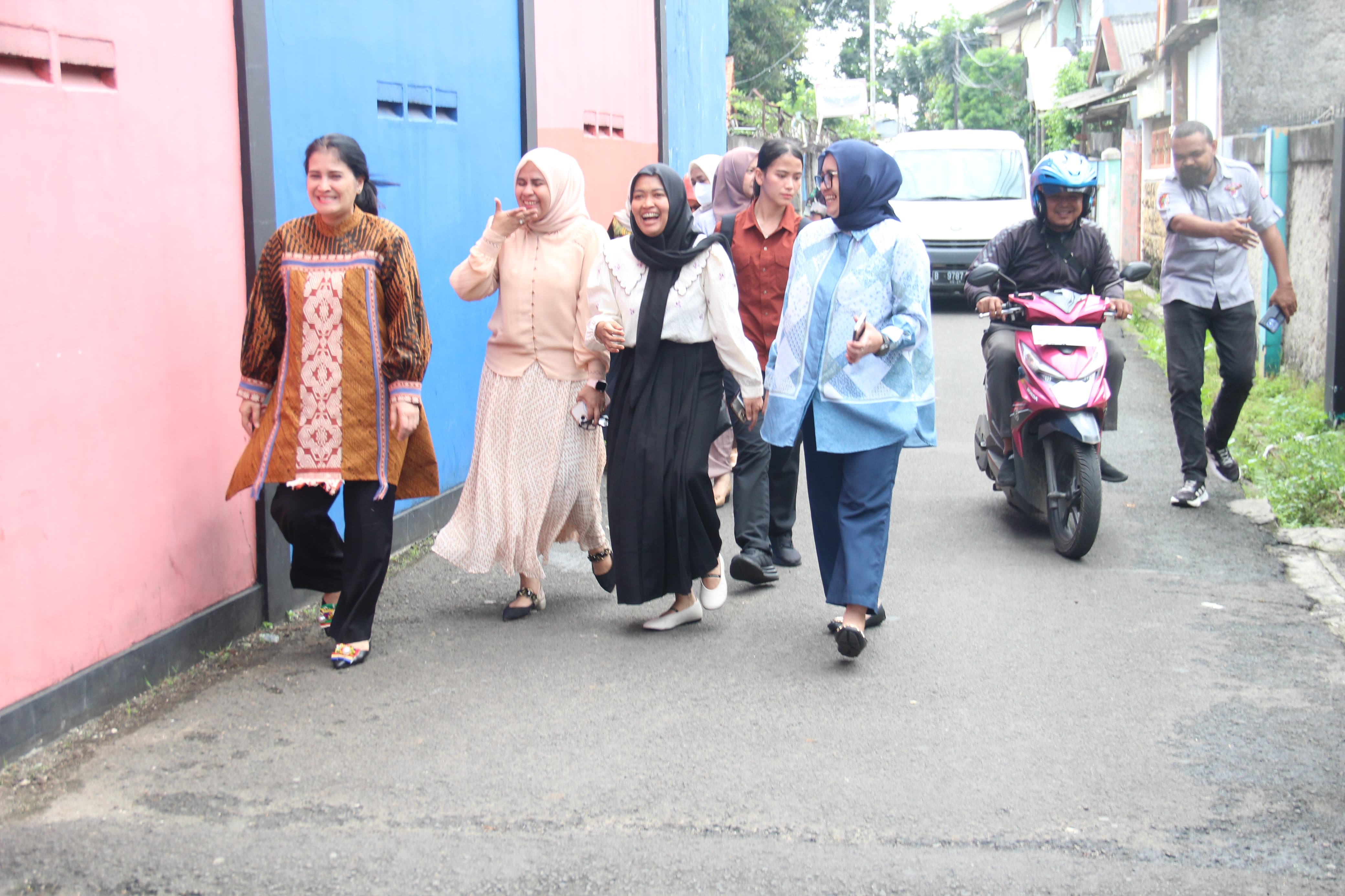 MEGAPOLITANPOS.COM Kota Tangerang - Ny. Fitria Ary Sutrisno Ketua Persit KCK Cabang XX dim 0506/Tgr mendampingi kunjungan Ny. Lisa Rafael Granada Baay. Ketum Persit PD Jaya ke TK Kartika X-14 yang Jalan KH Hasyim Ashari RT. 03 RW. 04 Kelurahan Sudimara Barat Kecamatan Ciledug Kota Tangerang, Senin (30/06/2025).