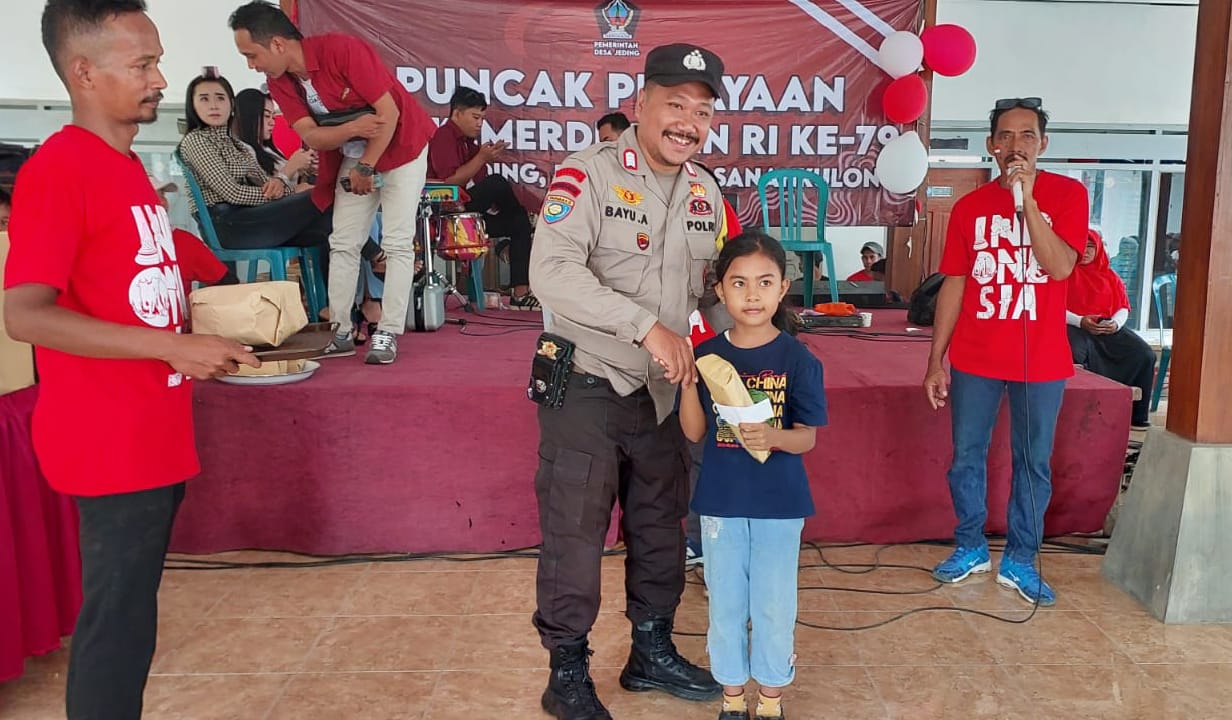 "Oleh karenanya sebagai wujud rasa syukur atas jasa para pahlawan yang telah merebut hak kemerdekaan kita wajib menjaga kedaulatan NKRI yang berdasarkan Pancasila dan UUD 1945," kata Kepala Desa Jeding.