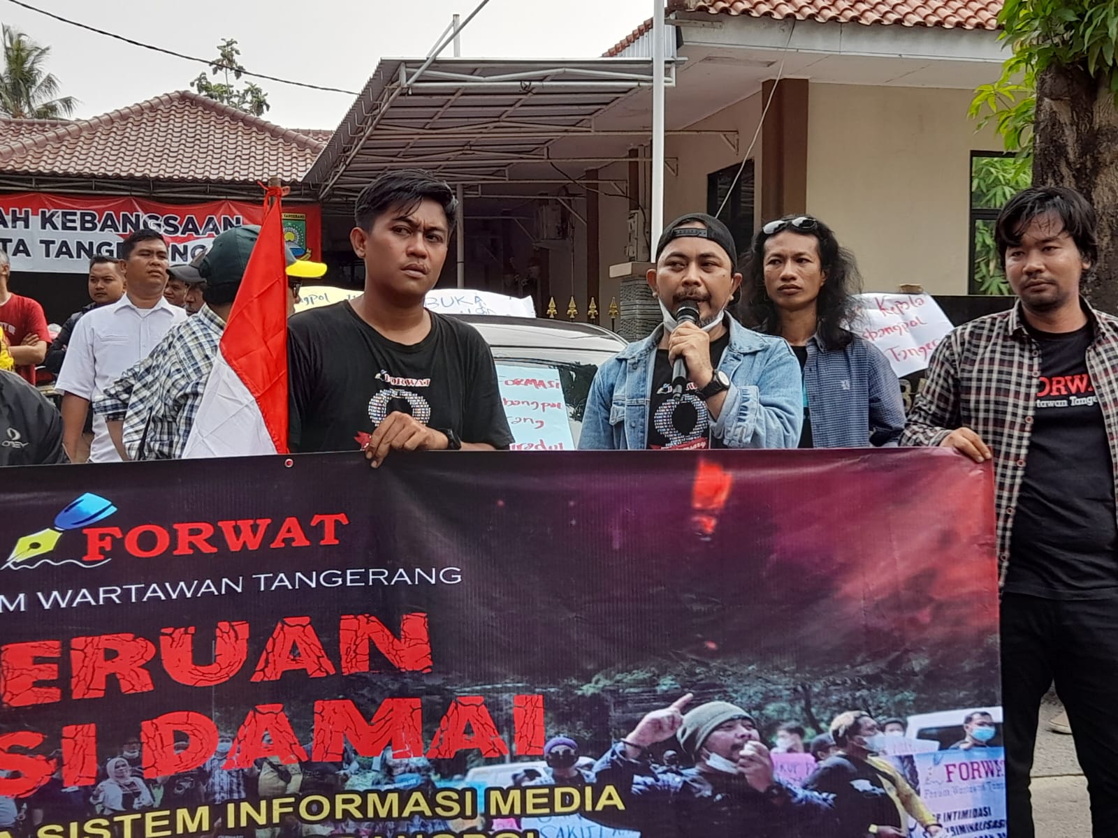 Usai orasi, perwakilan puluhan wartawan yang tergabung di Forwat kemudian diterima Kepala Badan Kesbangpol Kota Tangerang, Teguh Supriyanto dan Kepala Bidang, Politik Dalam Negeri (Poldagri), Saiful Ulum.