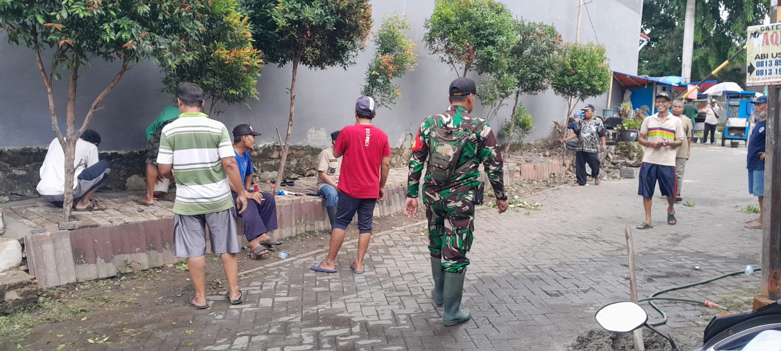 Hari Libur, Babinsa Lakukan Pembersihan Saluran Air Yang Mampet