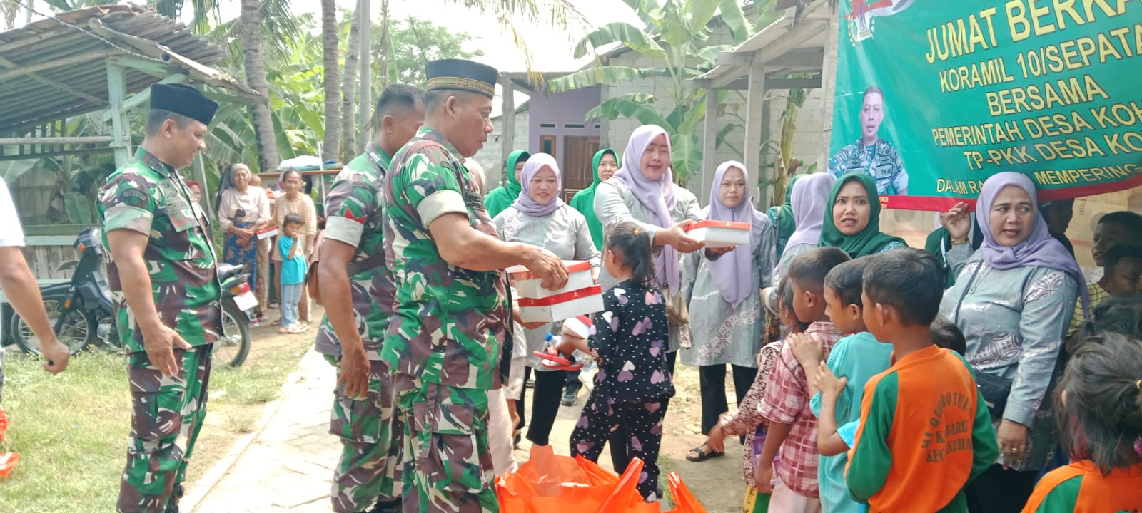 MEGAPOLITANPOS.COM Tigaraksa - Jelang HUT TNI ke 79 dan juga Sebagai bentuk kepedulian terhadap masyarakat, PLH Danramil 10/Sepatan Kapten Inf Triyadi membagikan nasi kotak kepada warga masyarakat di Jum'at berkah, kegiatan dilakukan di wilayah teritorial Koramil 10/Sepatan, Desa Kohod Kec.Pakuhaji RT01/RW 01 Kab.Tangerang Jum'at (04/10/2024).