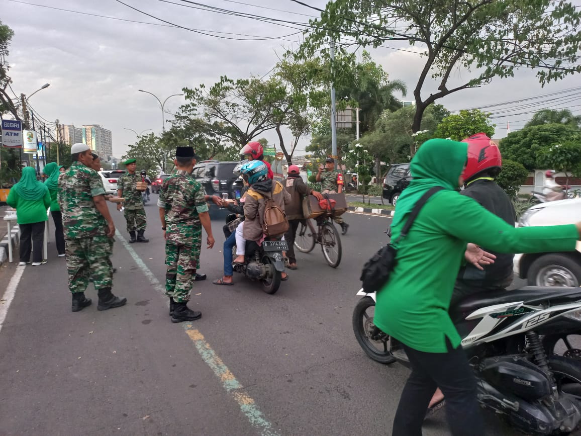 MEGAPOLITANPOS.COM Kota Tangerang - Indahnya bulan Ramadhan itu yang tersirat bagi Koramil 01/Tgr, terlihat anggota Koramil 01/Tgr, Kodim 0506/Tgr beserta anggota Persit KCK Ranting 02 Koramil 01/Tgr, Kodim 0506/Tgr melaksanakan pembagian takjil buka puasa di jalan raya depan Koramil 01/Tgr, Jalan Veteran Kelurahan Sukasari Kecamatan Tangerang, Kota Tangerang, Jum'at (14/04/2023).