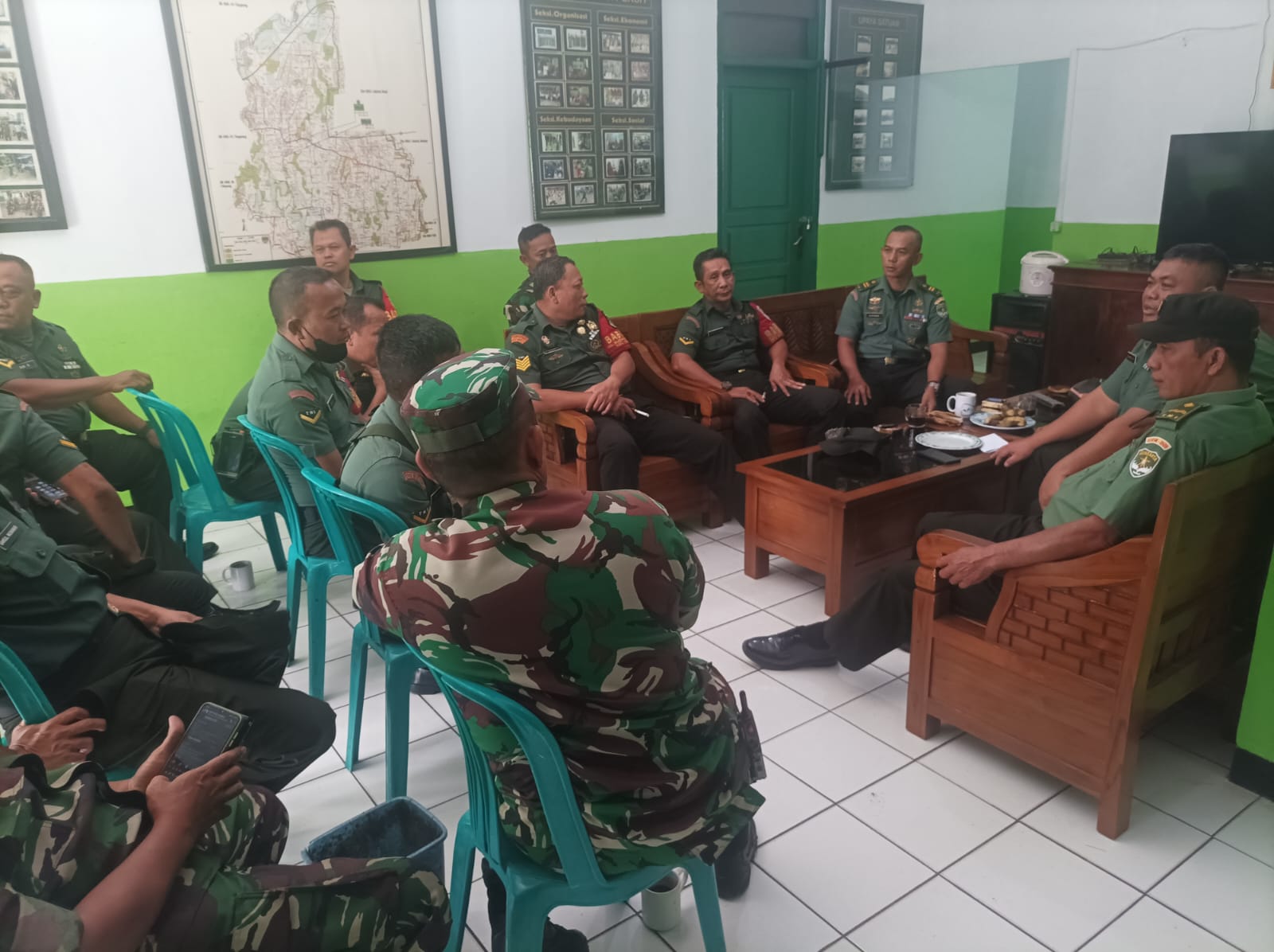 Keterangan Gambar : Bati Tuud Koramil 04/Ciledug memberikan pengarahan dan pembekalan kepada para Babinsa tentang rencana kegiatan di wilayah Koramil masing-masing.