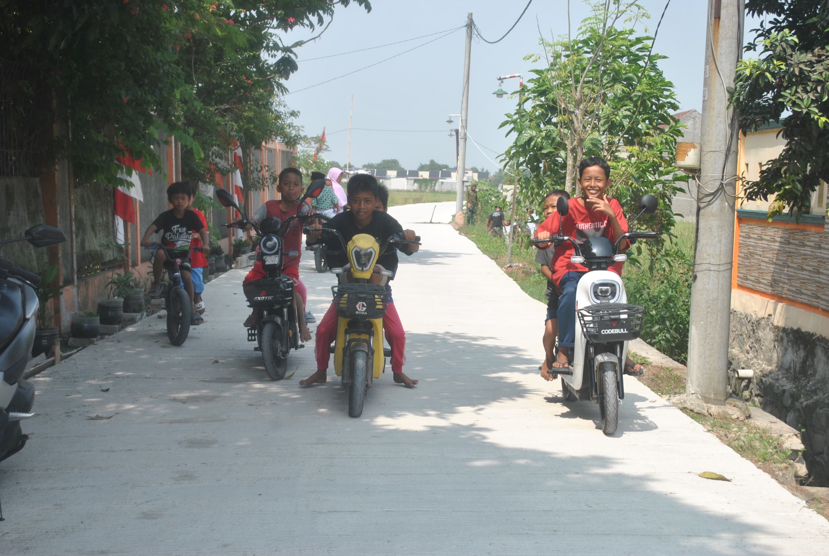 "Kami senang dengan adanya jalan baru ini. Sekarang, kami tidak perlu lagi menghindari air kubangan dan menutup hidung karena jalan di desa kami sudah bagus. Saya dan temen-temen bisa sampai di sekolah dengan lebih cepat dan tidak terlambat lagi,"katanya polos,dan asik bermain sepeda bersama teman-temannya di jalan yang bagus itu.