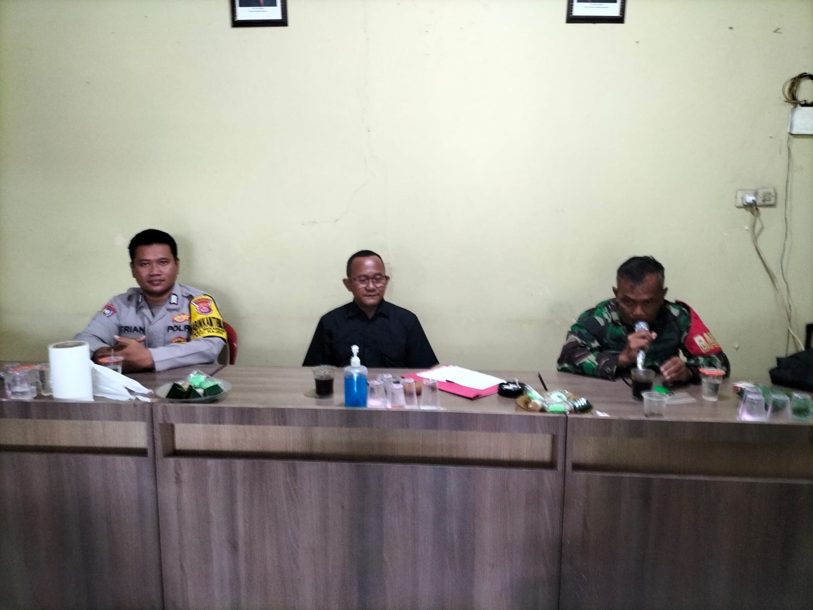 Keterangan Gambar : Babinsa Koramil 12/Rajeg, Kodim 0510/Trs bersama Bhabimkamtibmas Bripka Trian melaksanakan Penyuluhan dan Pelatihan Terhadap Linmas Desa Mekar Sari