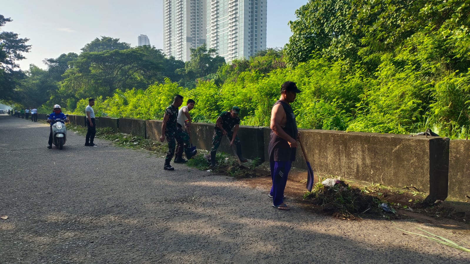 Karya Bakti Bersama Warga, Koramil 02/Curug Bersihkan Sampah dan Rumput di Jalan Siloam Lippo Karawaci