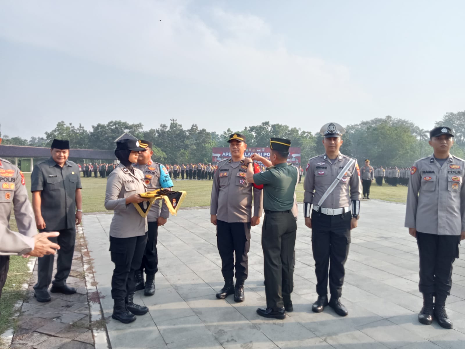 Keterangan Gambar : Kasdim 0510/Tigaraksa Mayor Inf Hendrik Sudrajat menghadiri kegiatan apel Deklarasi Polmas RW (Rukun Warga) Polresta Tangerang tahun 2023.