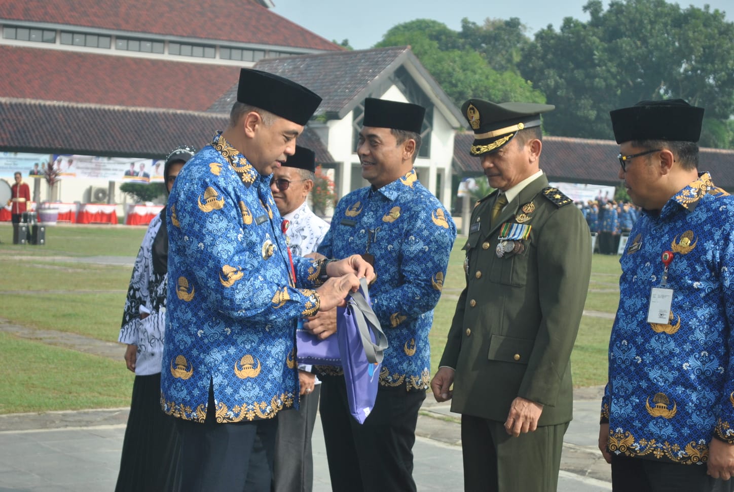 MEGAPOLITANPOS.COM Kab Tangerang - Kasdim 0510/Trs Mayor Inf Hendrik Sudrajat mewakili Dandim 0510/Trs Letkol Arh S.S. Bandjar mengikuti rangkaikan upacara Hari Pendidikan Nasional dan Hari Otonomi Daerah serta Peluncuran Gerakan Kurangi Sampah Kantor (KURASAKAN) Tahun 2023.