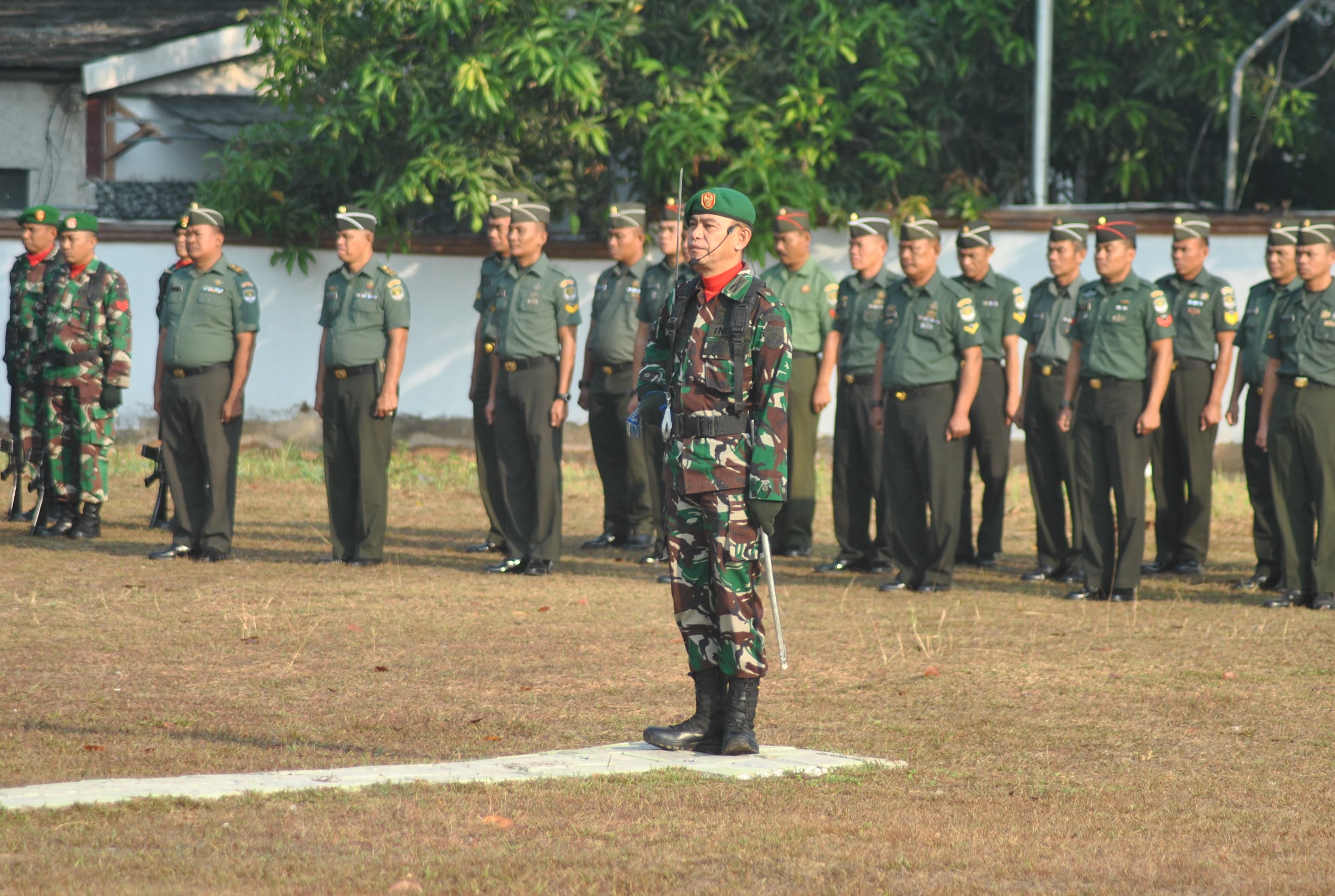 Keterangan Gambar : Kasdim 0510/Trs Mayor Arh Didik Wahyudi. Sedangkan Komandan Upacara (Danup) Kapten Inf Irwanto Danramil 14 Panongan.