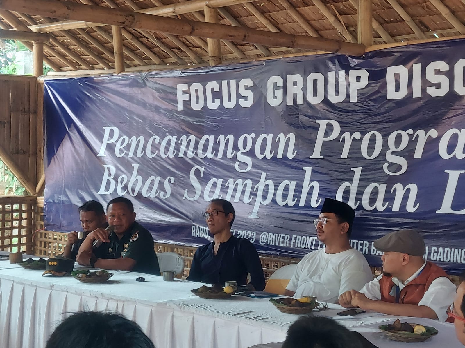 MEGAPOLITANPOS.COM Kabupaten Tangerang - Mewakili Danrem 052/Wkr Brigjen TNI Putranto Gatot SH. S.Sos, M.M. Kasrem 052/Wkr Kolonel Inf Dr.Indarto Kusnohadi S.I.P.,S.H.,M.H.,M.M. menghadiri pencanangan program Cisadane Bebas Sampah di tahun 2045, kegiatan di selenggarakan oleh Banksasuci Foundation bertempat di Banksasuci Kelurahan Cihuni Kecamatan Pagedangan Kabupaten Tangerang, Rabu (10/05/2023).