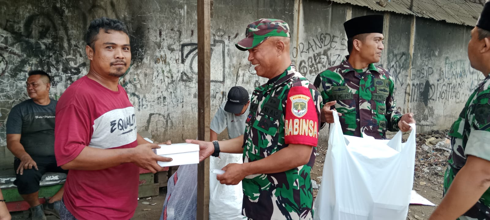 MEGAPOLITANPOS.COM Tigaraksa - Kali ini menjadi sasaran Jum'at berkah kodim 0510/Tigaraksa adalah warga pekerja pencari limbah dan tukang ojek yang mana kegiatan ini merupakan program rutinitas setiap Minggu yang dilakukan Kodim 0510/Tigaraksa, Jum'at berkah bertujuan untuk membantu warga masyarakat yang membutuhkan.
