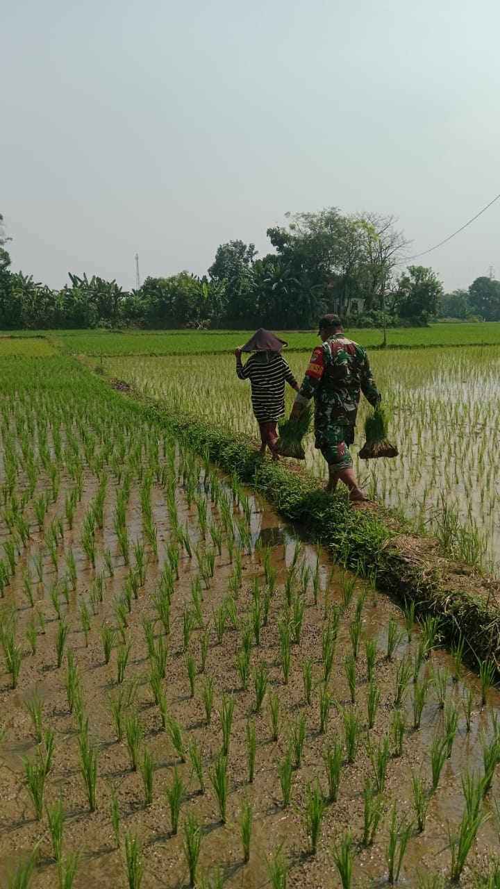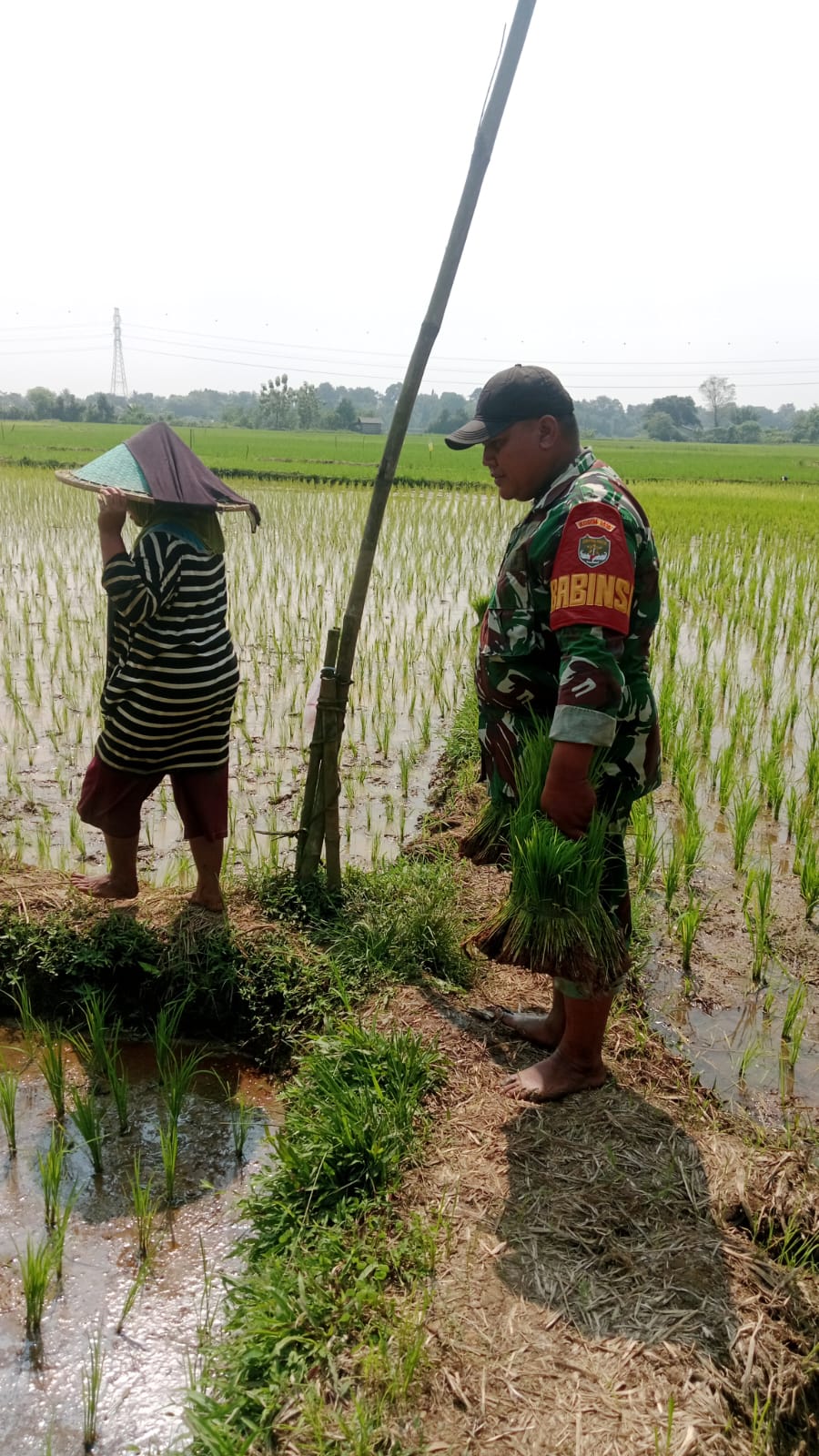 Koptu Yayan Babinsa Koramil 14/Panongan mengatakan, membantu penanaman padi di lahan sawah petani tersebut dalam rangka pendampingan terhadap petani binaan Koramil 14/Panongan.