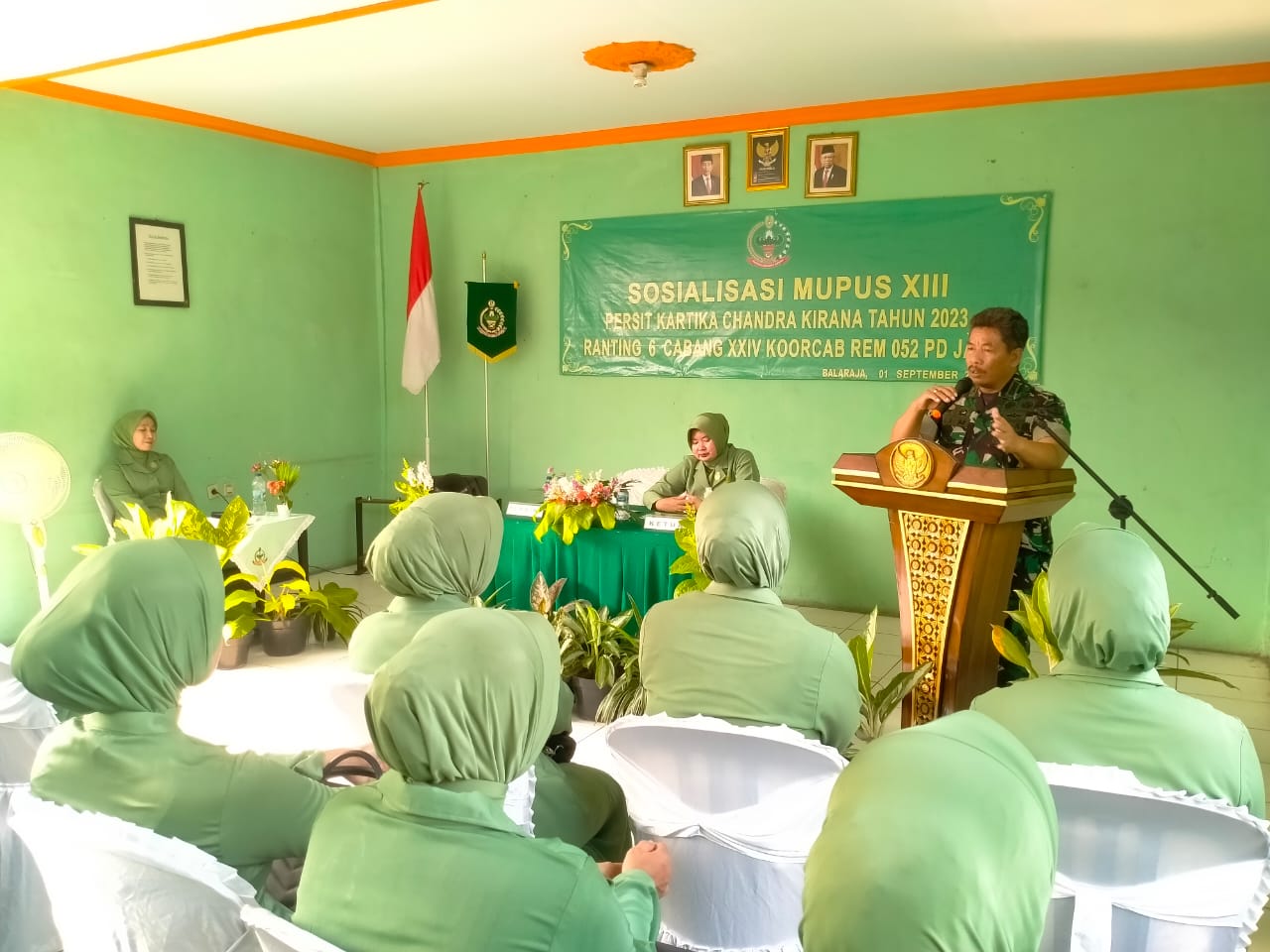 MEGAPOLITANPOS.COM Kab. Tangerang, Tigaraksa - Ketua Persatuan istri tentara (Persit) KCK ranting 6 Koramil 05/Balaraja Kodim 0510/Trs, Ny. Ali Maskuri SE menggelar pertemuan dengan anggota Persit KCK ranting 6 Koramil 05/Balaraja, Kegiatan di buka langsung oleh Danramil 05/Balaraja Kapten Infantri Ali Maskuri S.E, kegiatan di gelar di Aula Makoramil 05/Balaraja, Jum'at (01/09/2023).