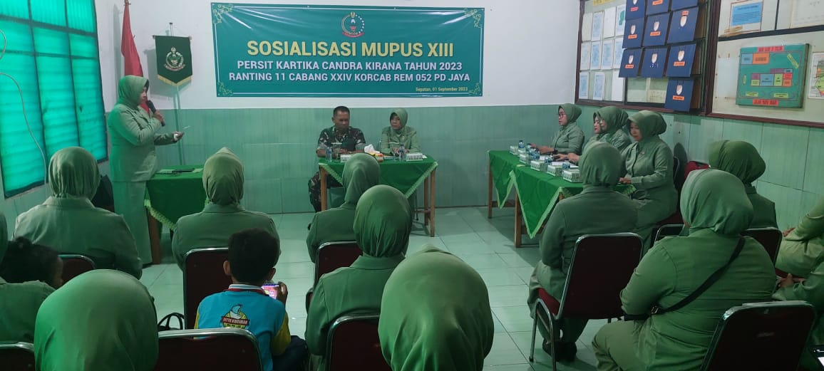 Ketua Persit KCK Ranting 11 Koramil 10/Sepatan Ny. Supadmi menyatakan pertemuan gabungan ini dilakukan terkait sosialisasi hasil musyawarah pusat (mupus) ke XIII Persit Kartika Chandra Kirana kepada anggota Persit KCK Cabang XII Cabang Kodim 0510/Trs yang di teruskan kepada anggota Persit KCK ranting 11 Koramil 10/Sepatan.