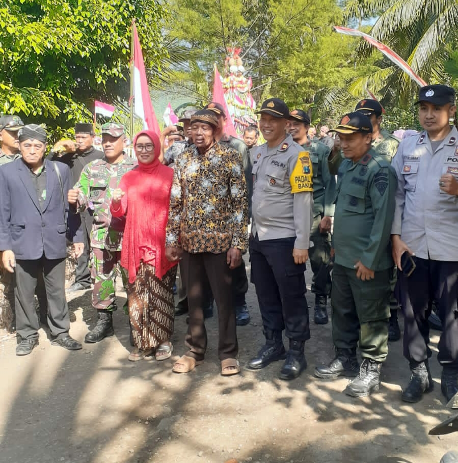 Keterangan Gambar : Kirab Tumpeng Agung larung sesaji Sutikno Kades Bululawang mengusung Tumpeng Agung hasil bumi di Blitar