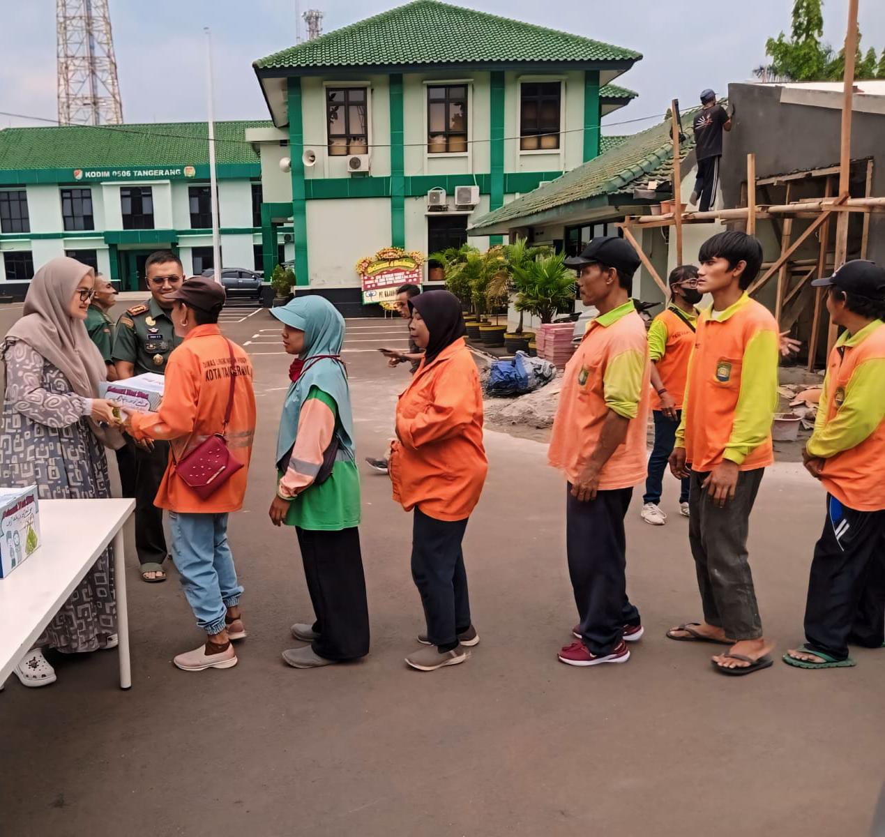 MEGAPOLITANPOS.COM Kota Tangerang - Membantu masyarakat yang membutuhkan, Kodim 0506/Tgr yang di pimpin langsung Dandim 0506/Tgr Kolonel Inf Endik Hendra Sandi di dampingi Ketua Persit KCK XX Cabang Kodim 0506/Tgr membagikan makanan gratis kepada tukang sapu jalanan. Pemberian di lakukan di depan Makodim 0506/Tgr Jalan TMP Taruna Kelurahan Sukasari Kecamatan Tangerang, Kota Tangerang, Senin (13/05/2024).