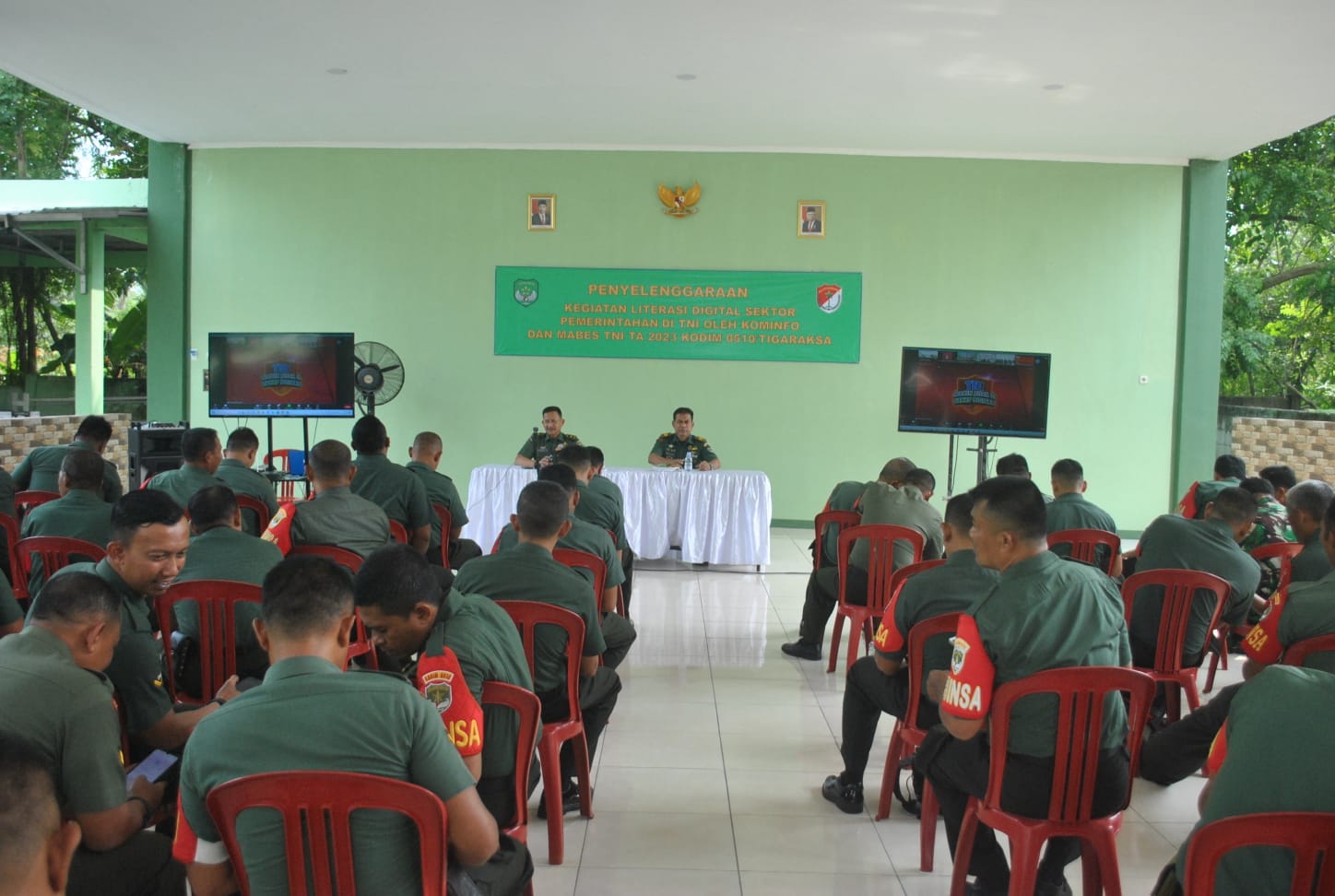 Keterangan Gambar : Kasdim 0510/Tigaraksa Bersama Pasi Ter Kapten Inf Arja Suarja dan jajaran mengikuti kegiatan Literasi Digital Sektor Pemerintah Kepada Prajurit TNI Tahun 2023