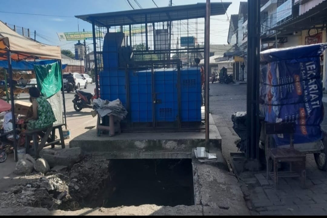 Keterangan Gambar : Genset yang di taruh di atas saluran air tersebut jelas melanggar aturan baik ketertiban umum dan perijinannya.