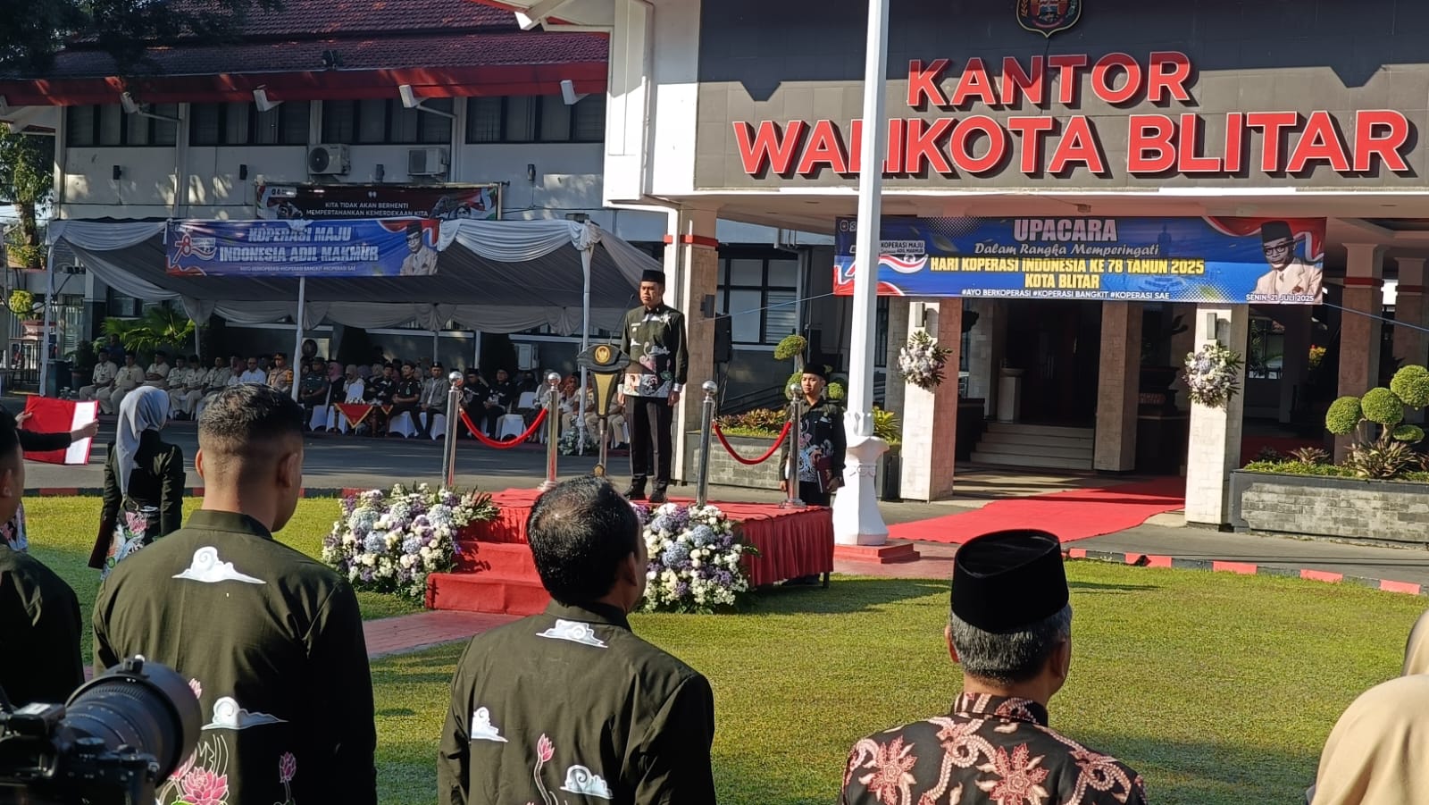 Keterangan Gambar : Pemerintah Kota Blitar menggelar upacara Hari Koperasi Nasional (Harkopnas) ke-78 di halaman Kantor Walikota Blitar, Senin (21/07/25).